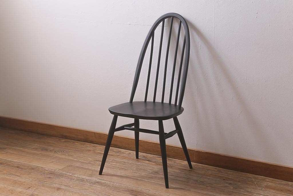 ヴィンテージ家具 ERCOL(アーコール) ペイント ブラックカラーが格好良いクエーカーチェア(ダイニングチェア、椅子)(R-042943)です。