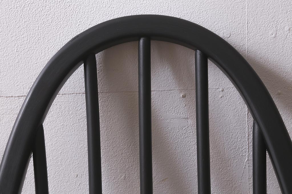 椅子・ベンチ> ダイニングチェア > ヴィンテージ家具 ERCOL(アーコール) ペイント ブラックカラーが格好良いクエーカーチェア(ダイニングチェア、椅子、ビンテージ)(R-042943)