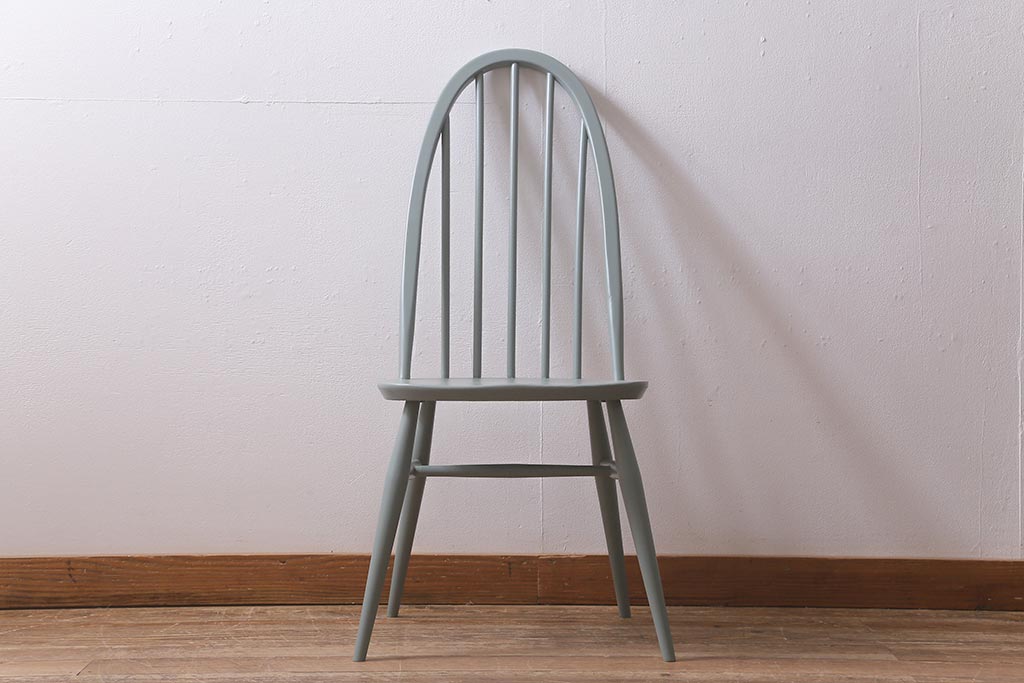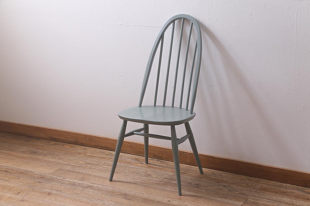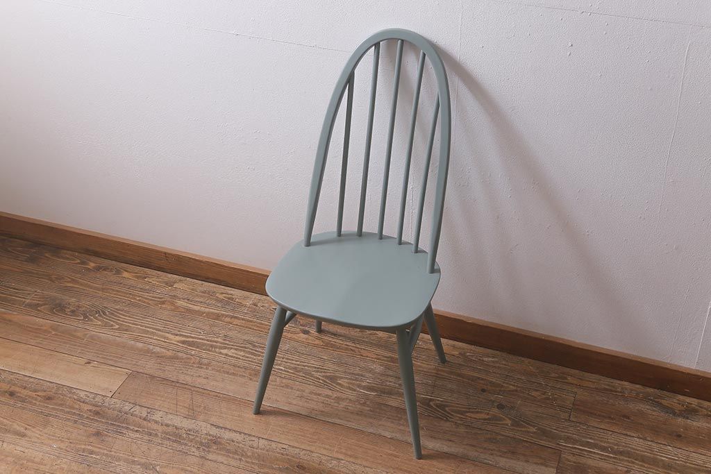 ヴィンテージ家具 ERCOL(アーコール) 淡いグリーンのペイントがおしゃれなクエーカーチェア(ダイニングチェア、椅子)(R-042944)です。