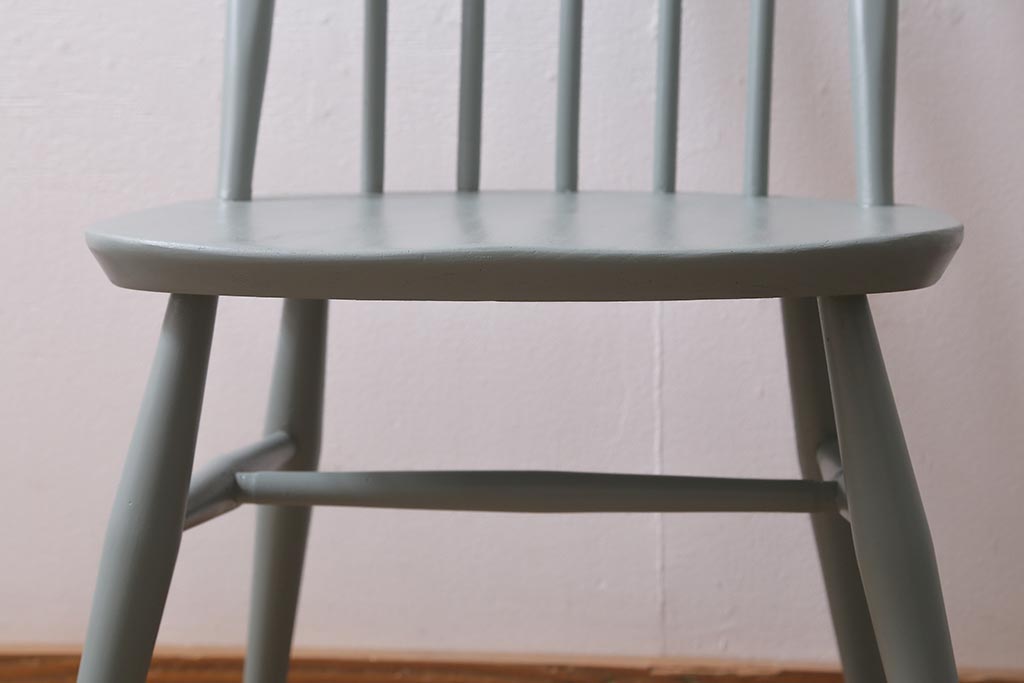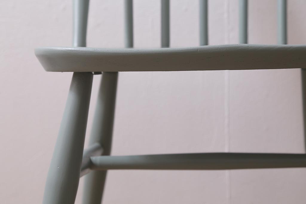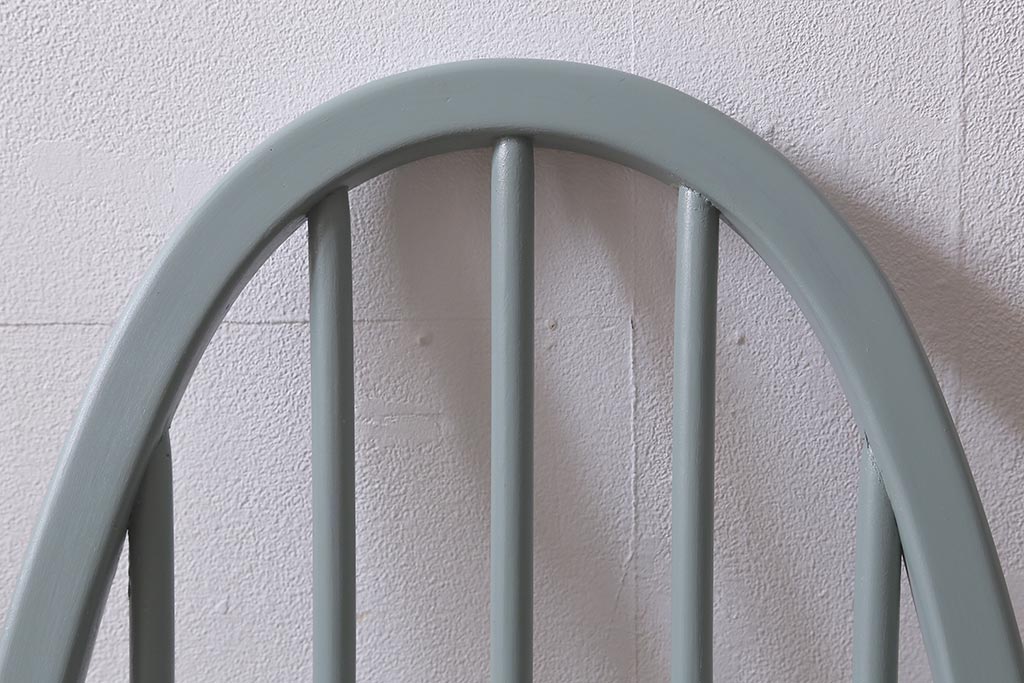 椅子・ベンチ> ダイニングチェア > ヴィンテージ家具 ERCOL(アーコール) 淡いグリーンのペイントがおしゃれなクエーカーチェア(ダイニングチェア、椅子、ビンテージ)(R-042944)