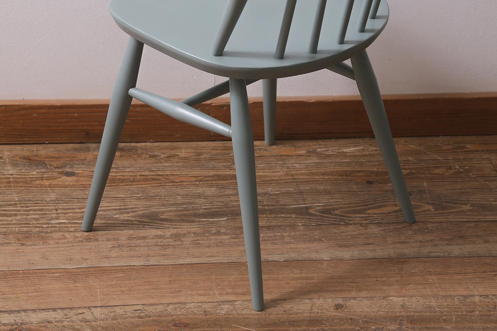 ヴィンテージ家具 ERCOL(アーコール) 淡いグリーンのペイントがおしゃれなクエーカーチェア(ダイニングチェア、椅子、ビンテージ)(R-042944)