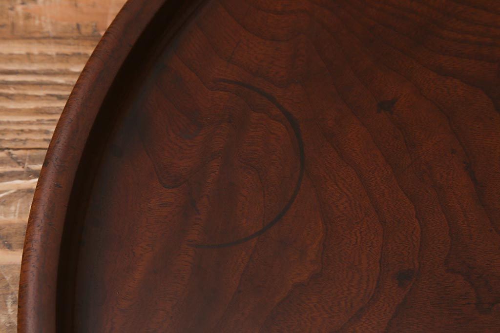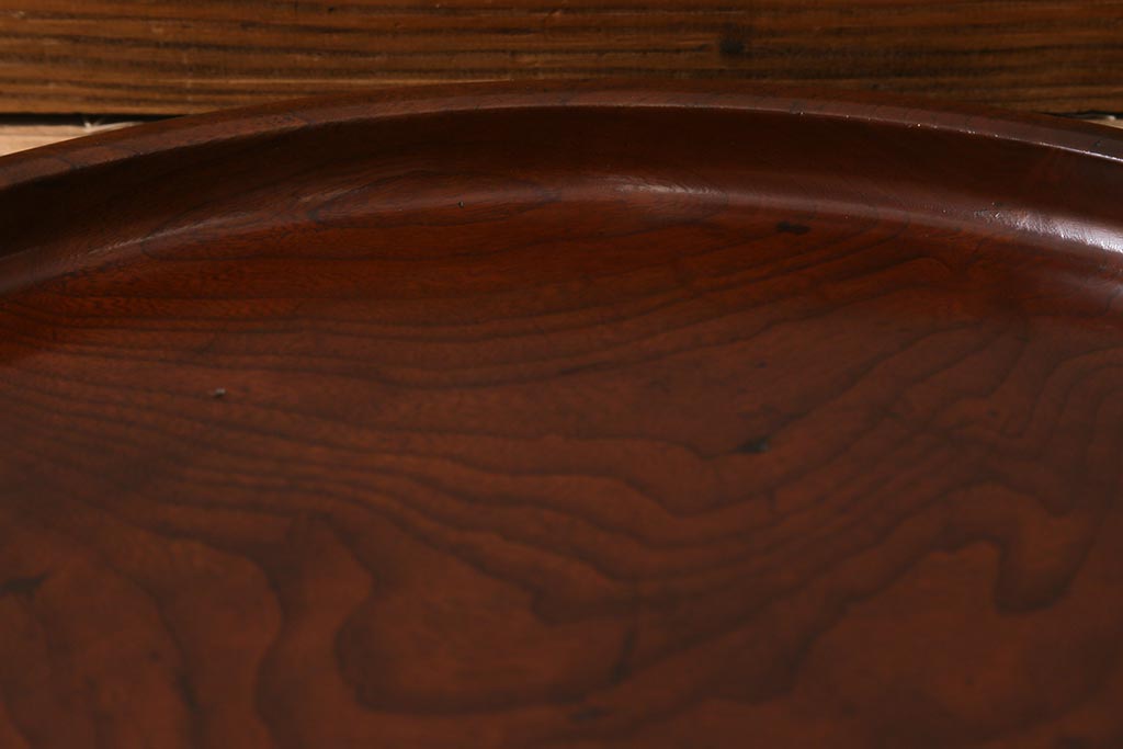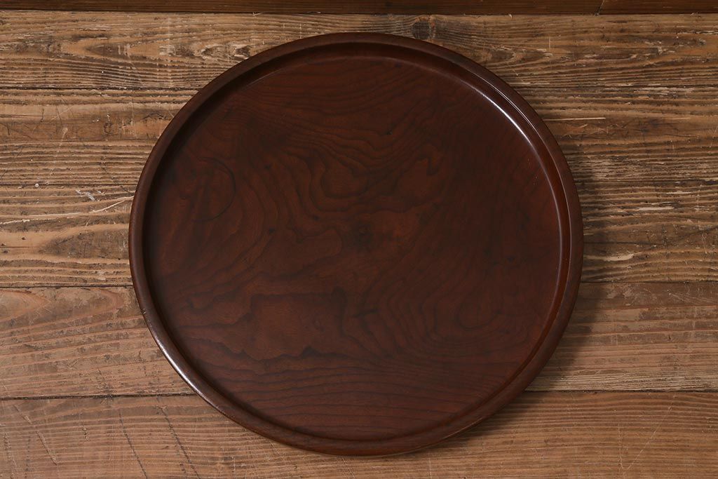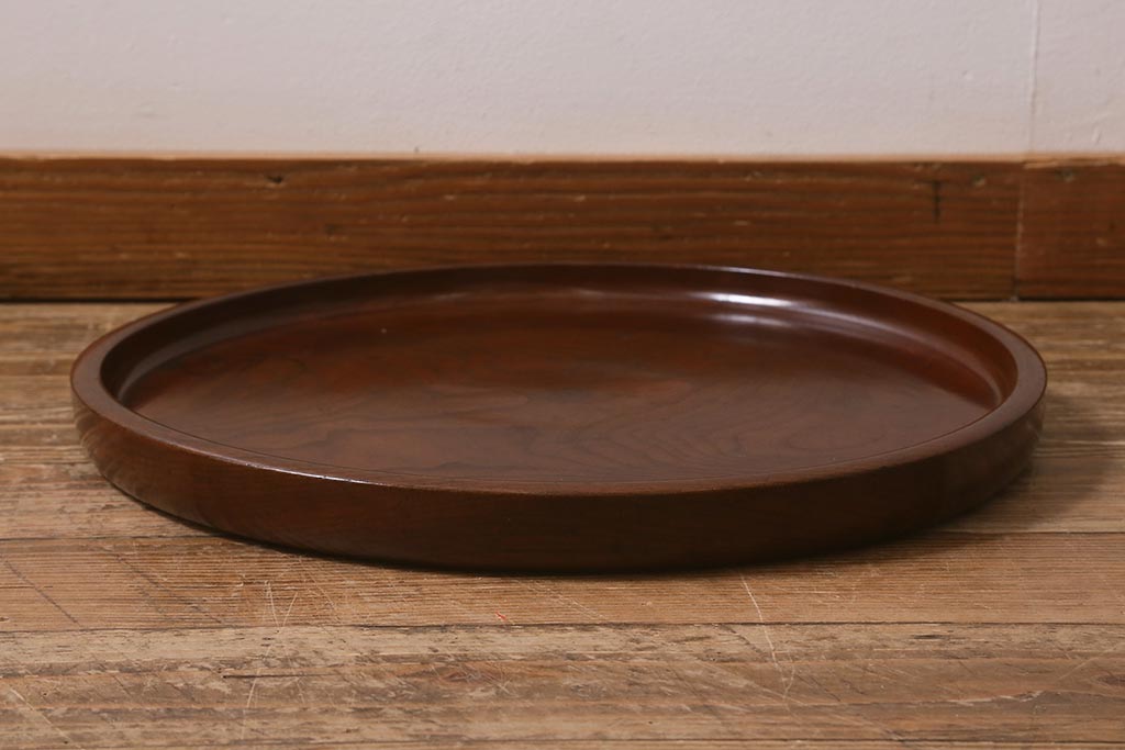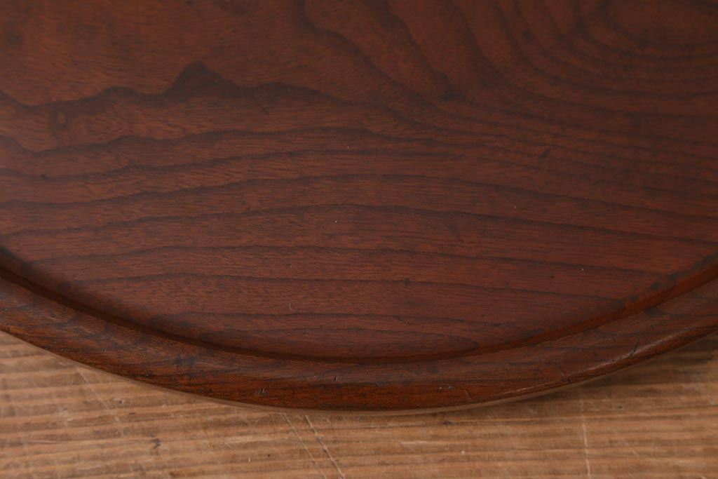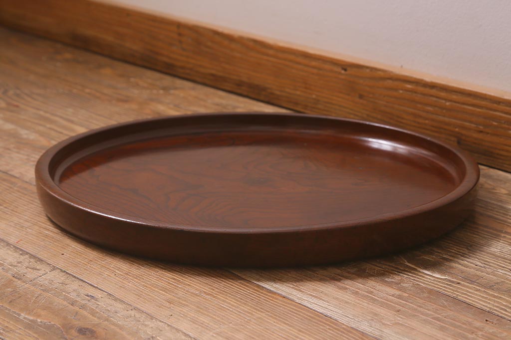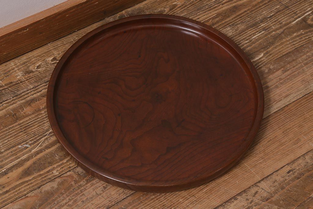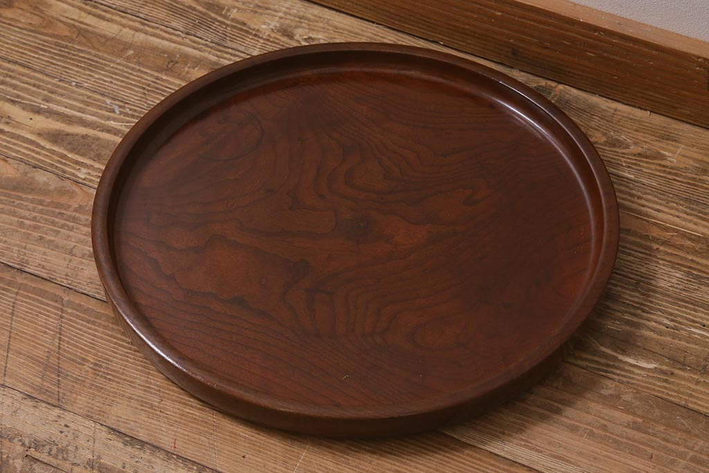 アンティーク雑貨 和製アンティーク 昭和初期 総ケヤキ材 漆塗り くっきりとした杢目が魅力的なお盆(漆器、トレー、丸盆)(R-043040)