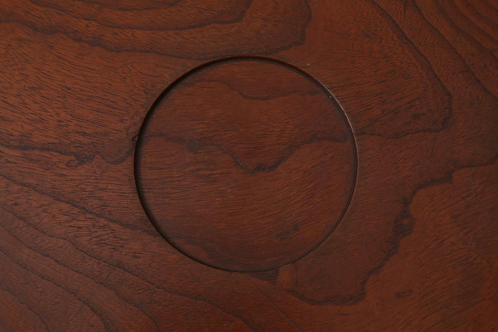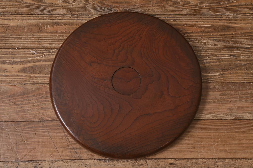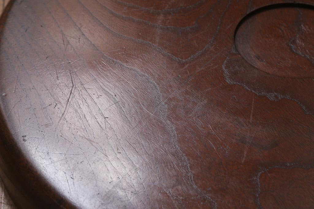 アンティーク雑貨 和製アンティーク 昭和初期 総ケヤキ材 漆塗り くっきりとした杢目が魅力的なお盆(漆器、トレー、丸盆)(R-043040)です。