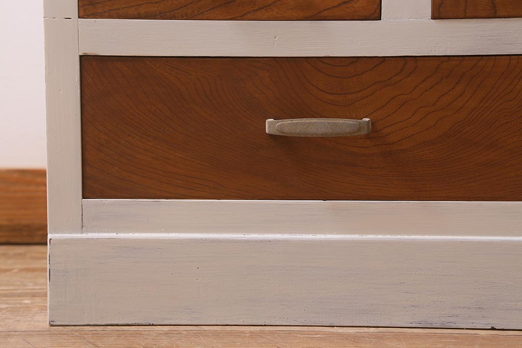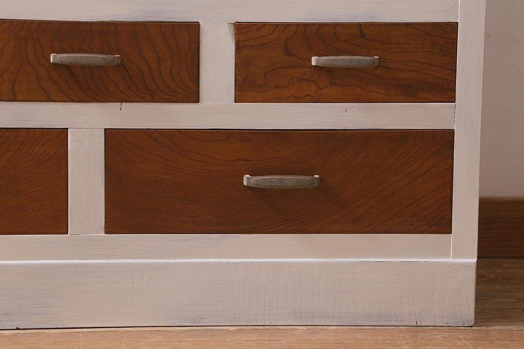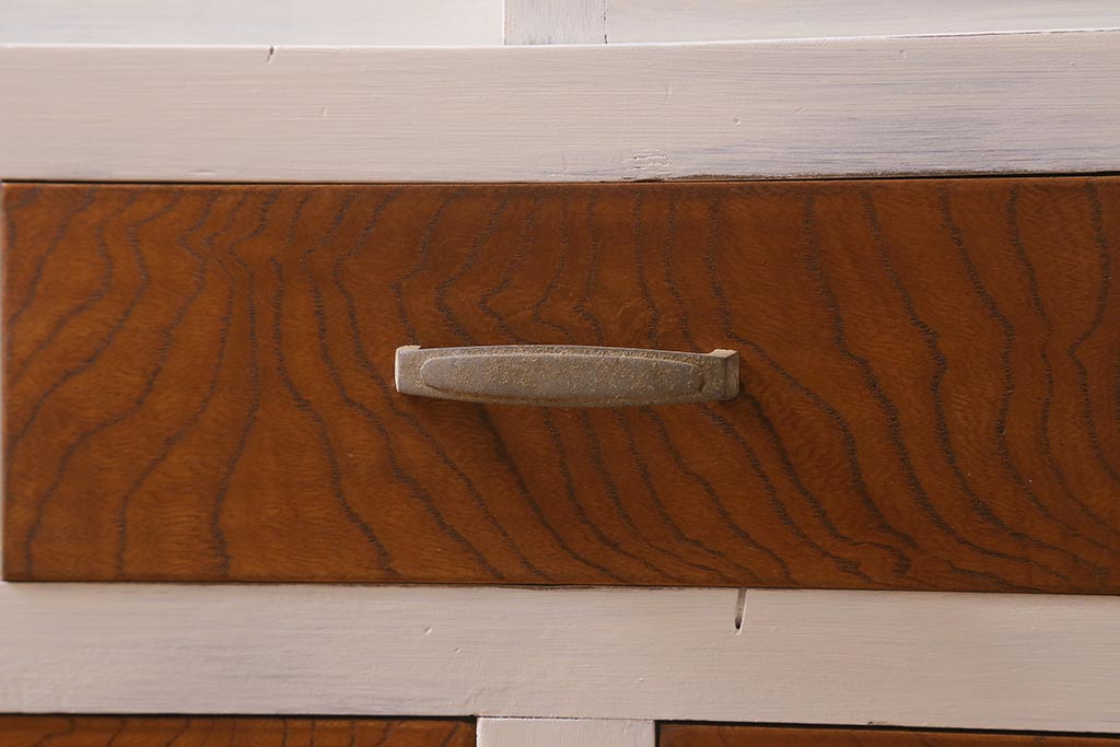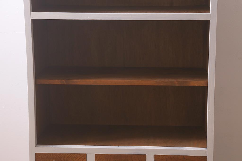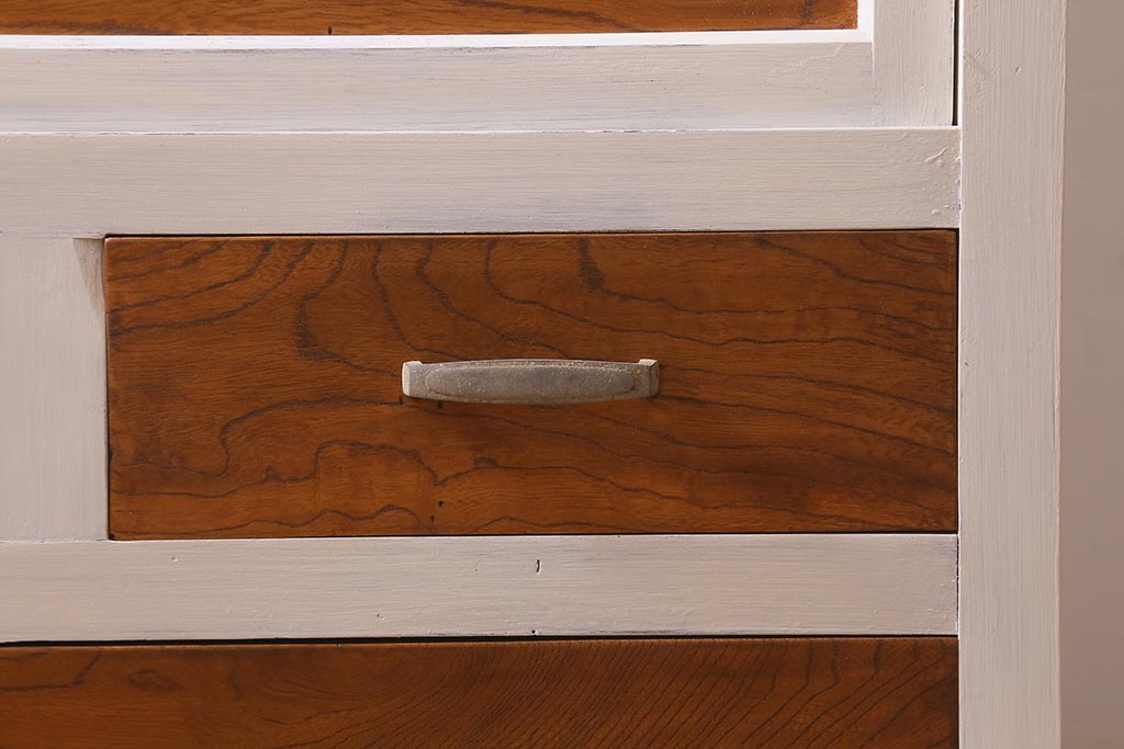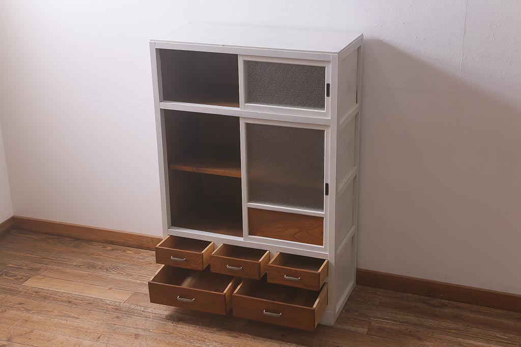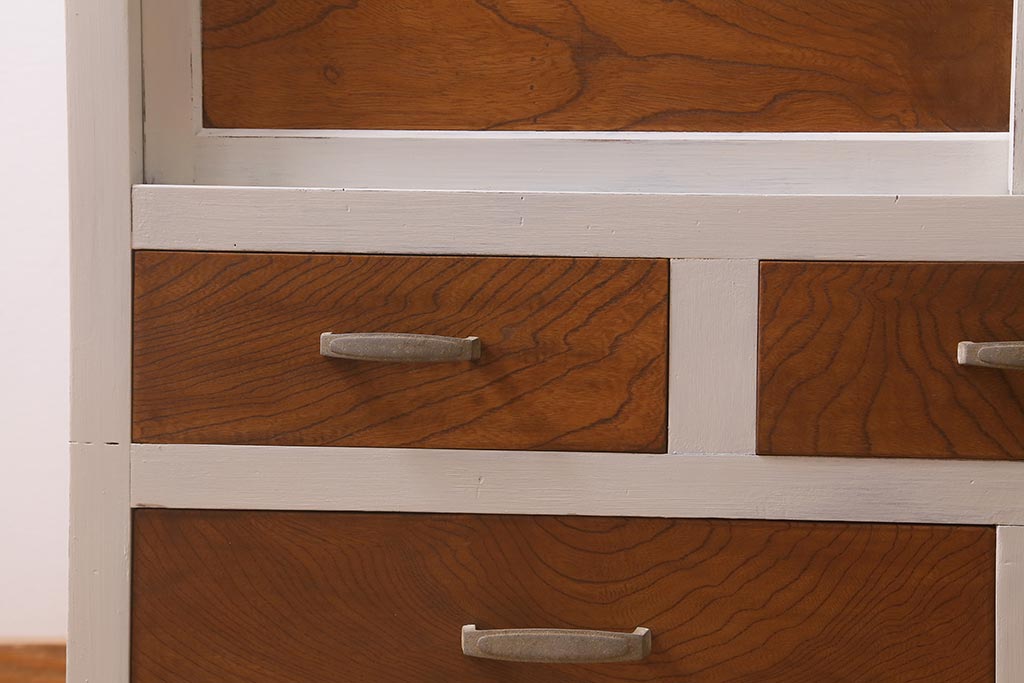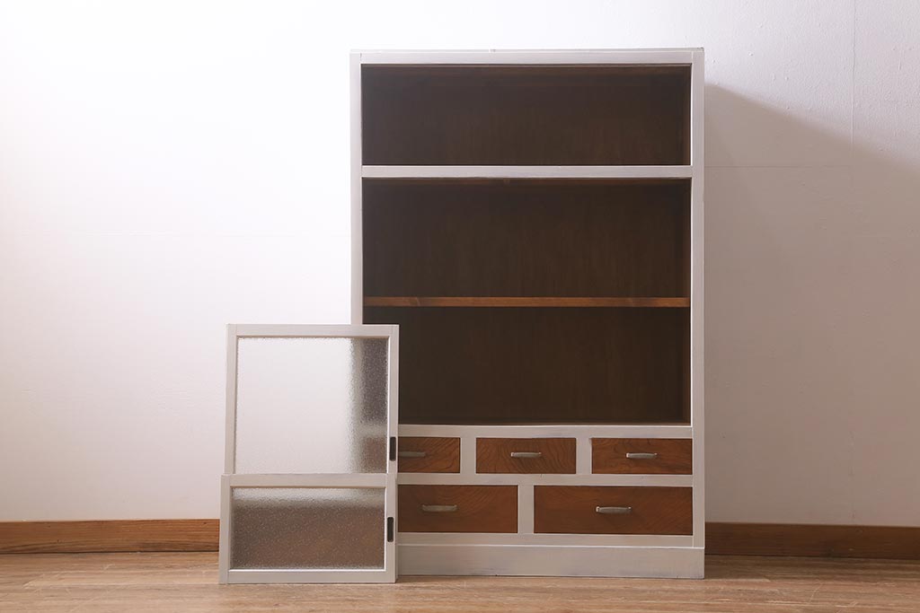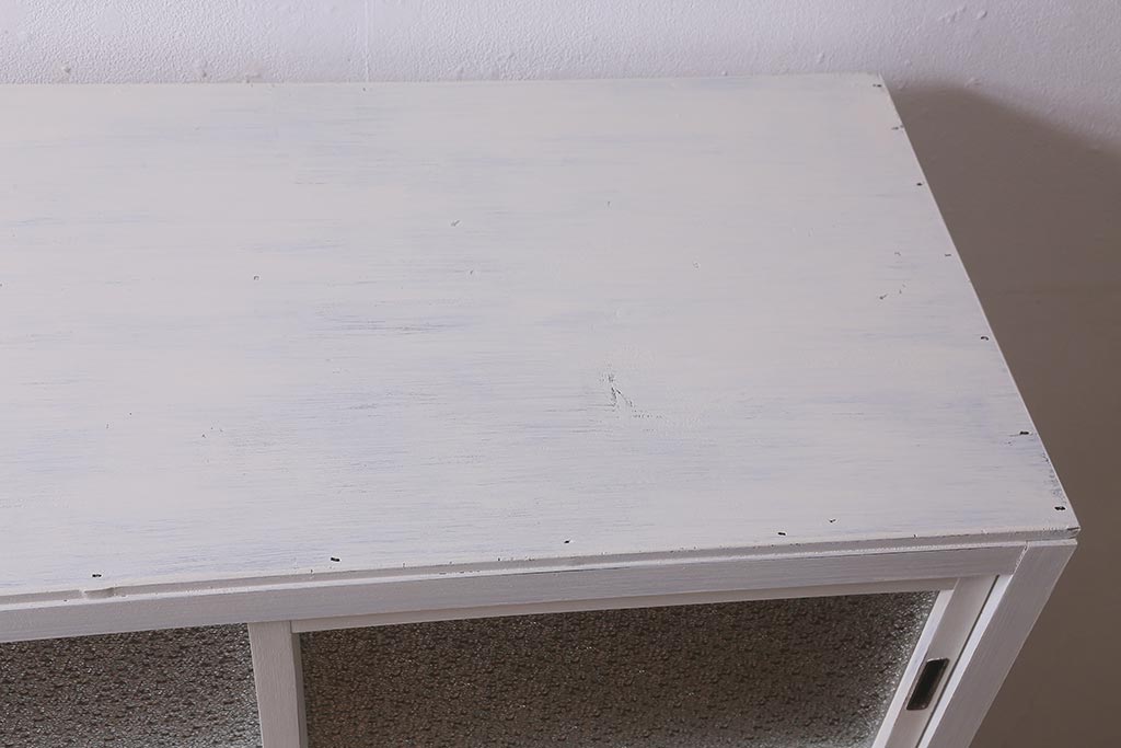 アンティーク家具 昭和中期 ペイント ダイヤガラス入り ツートンカラーがおしゃれなガラス戸棚(収納棚、キャビネット)(R-042907)です。