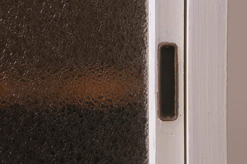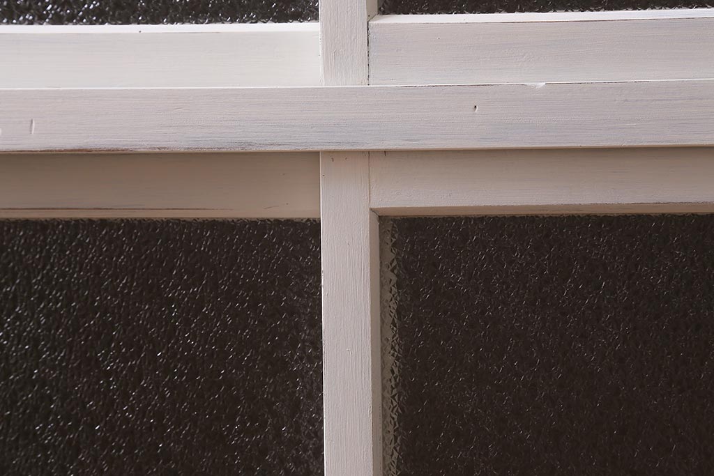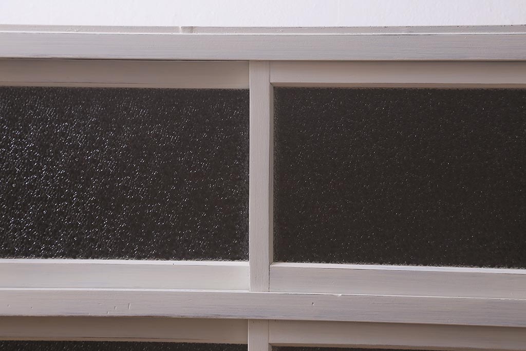 アンティーク家具 昭和中期 ペイント ダイヤガラス入り ツートンカラーがおしゃれなガラス戸棚(収納棚、キャビネット)(R-042907)