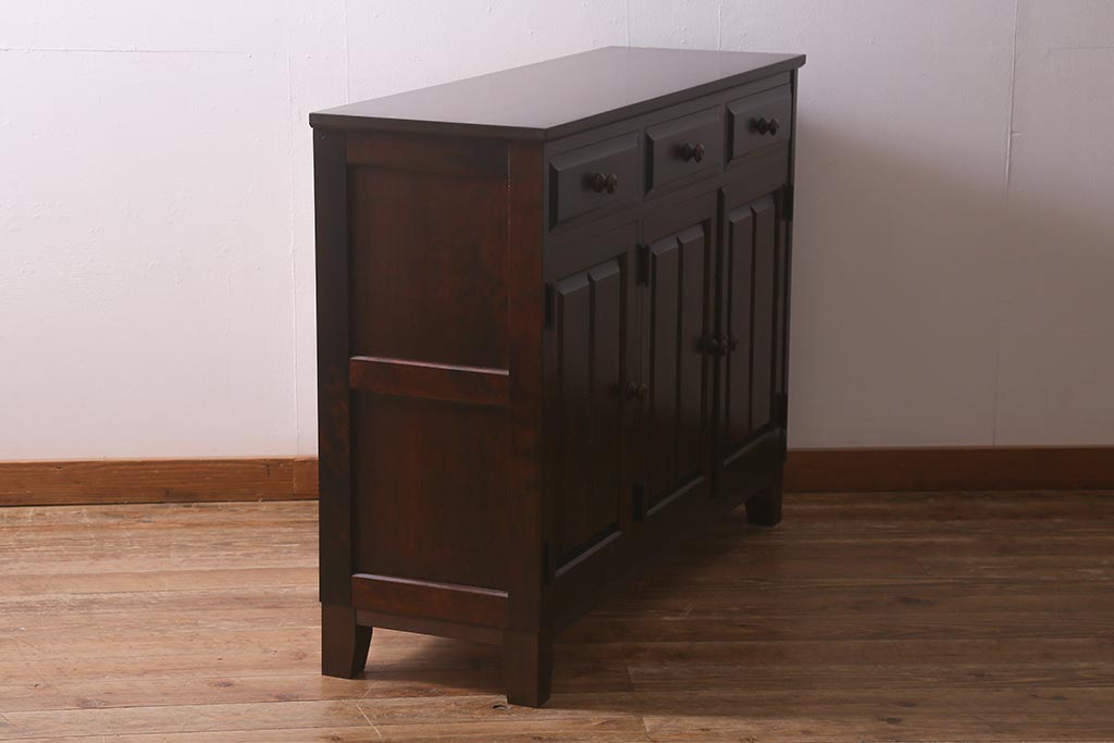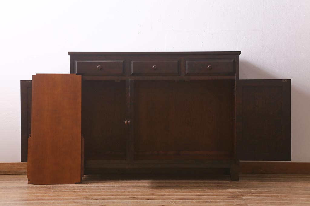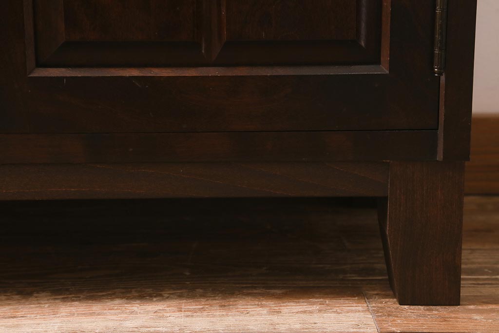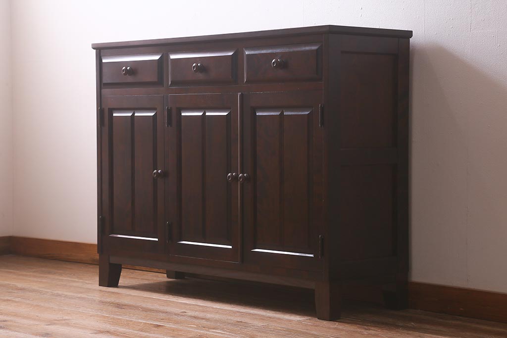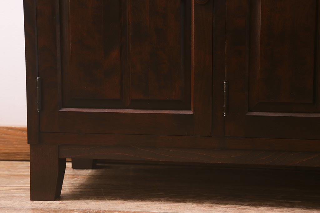 民芸家具 > 中古 リメイク 北海道民芸家具 モダンなデザインで使いやすい脚付きサイドボード(収納棚、戸棚)(R-042935)