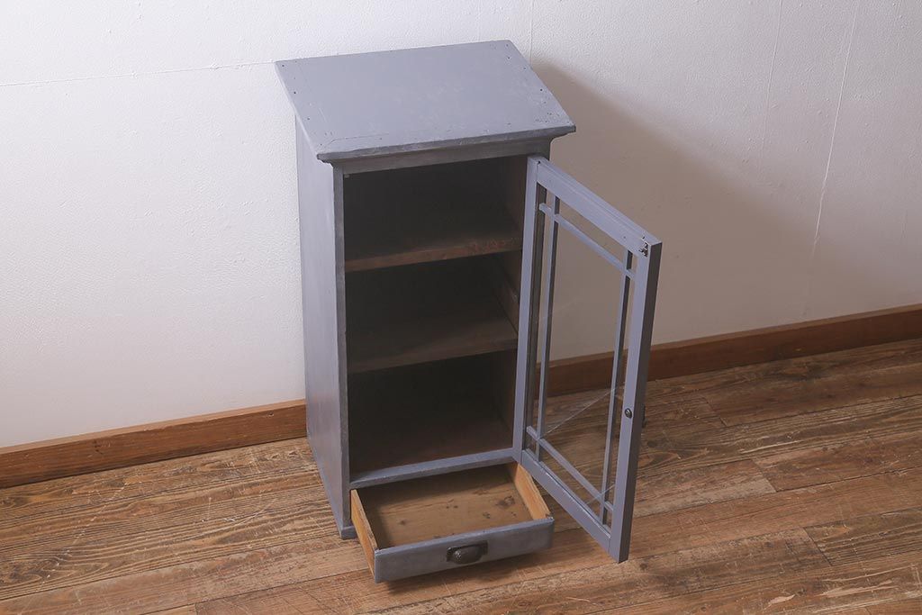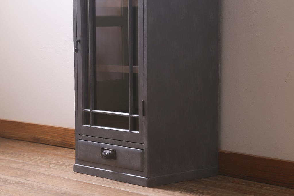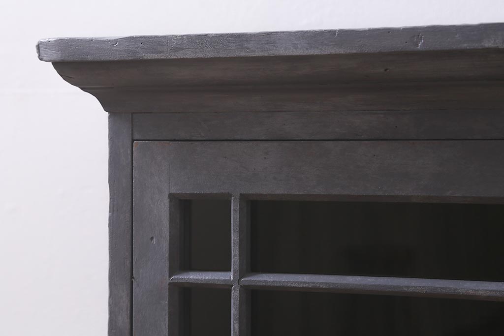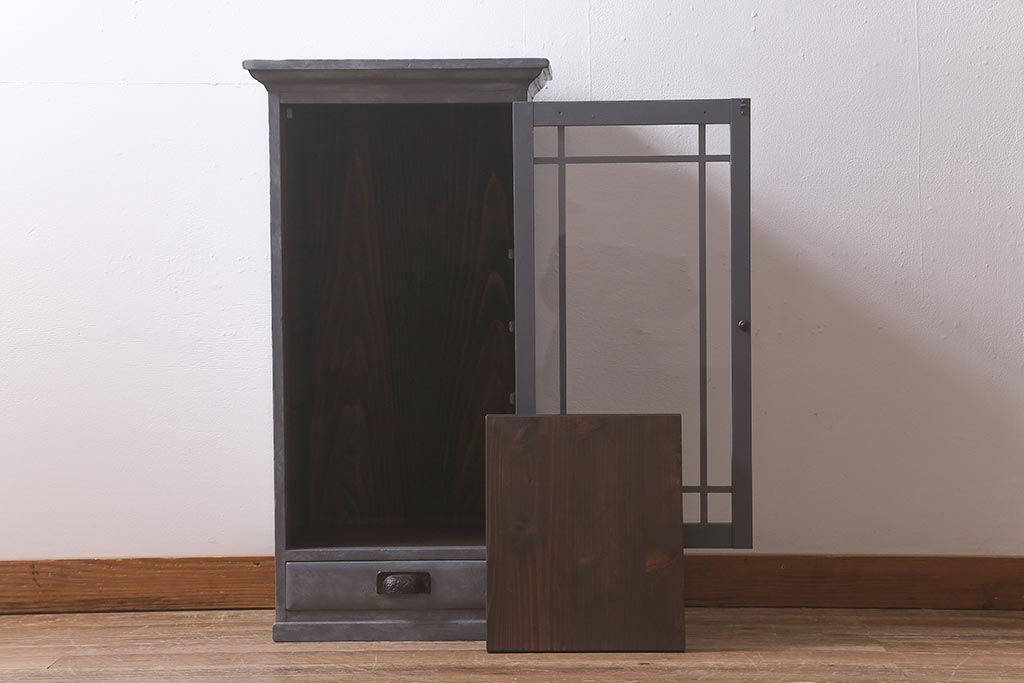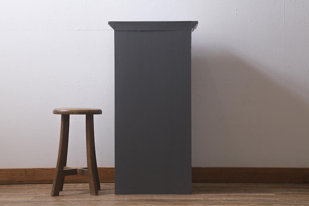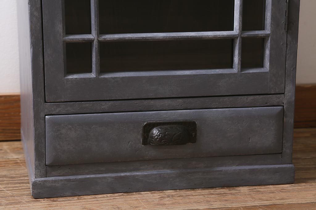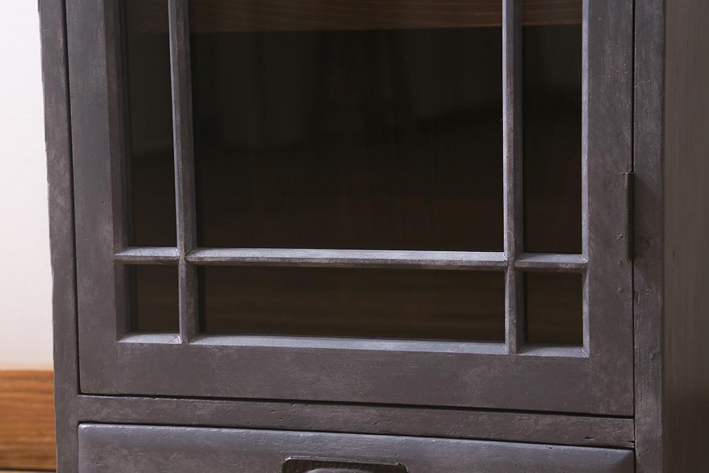 アンティーク家具 和製アンティーク ダークグレーペイントがおしゃれな引き出し付きサイドキャビネット(収納棚、飾り棚、ガラス戸棚)(R-042955)です。