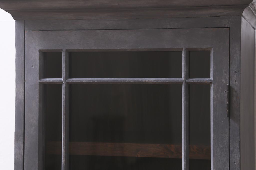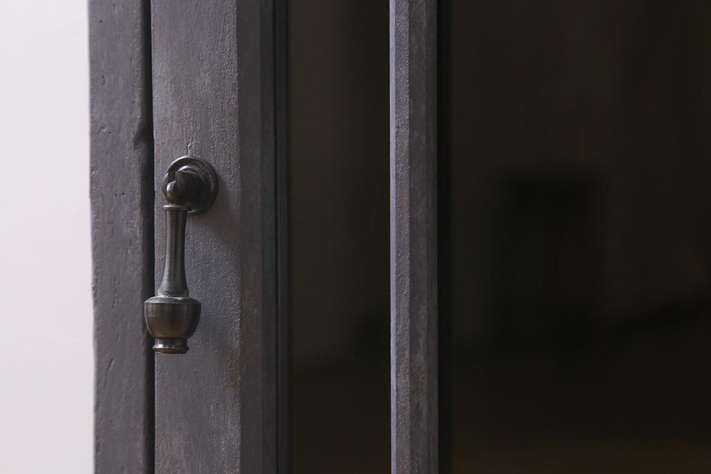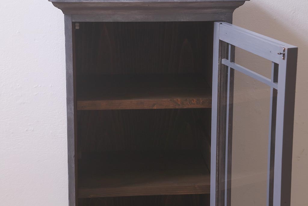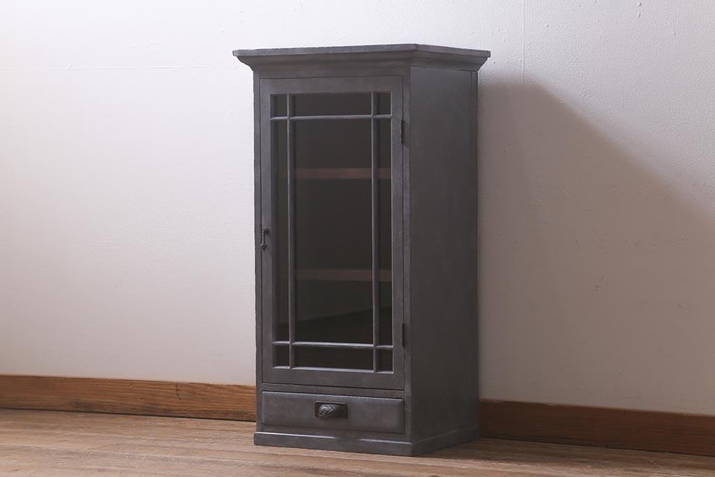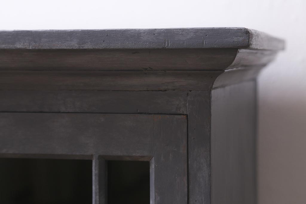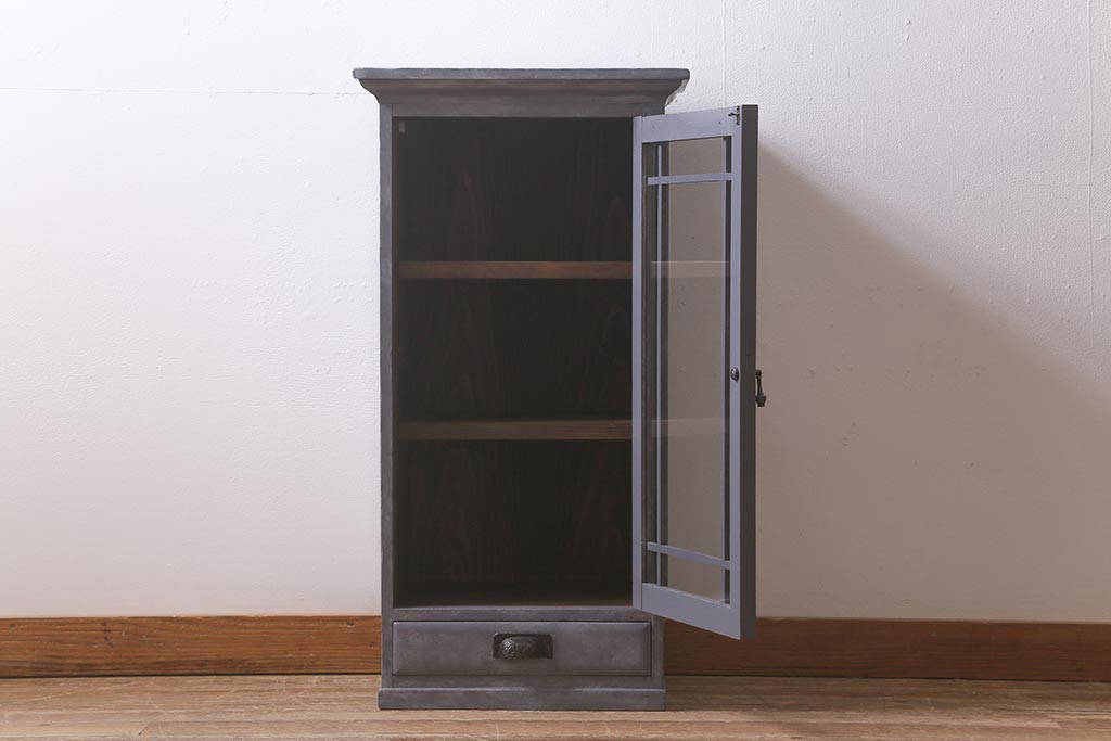 アンティーク家具 和製アンティーク ダークグレーペイントがおしゃれな引き出し付きサイドキャビネット(収納棚、飾り棚、ガラス戸棚)(R-042955)です。