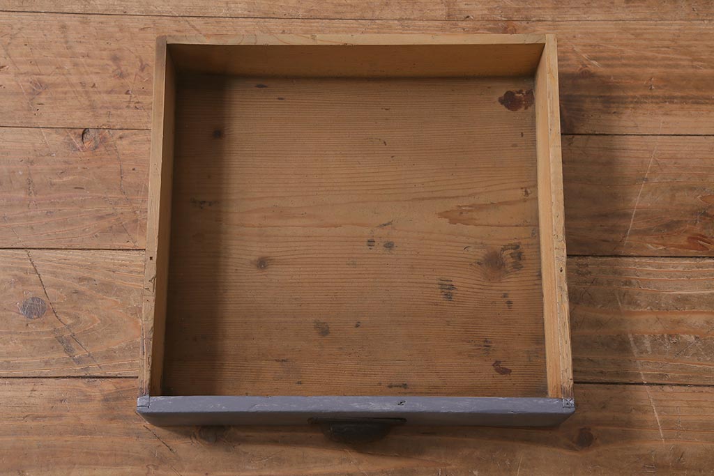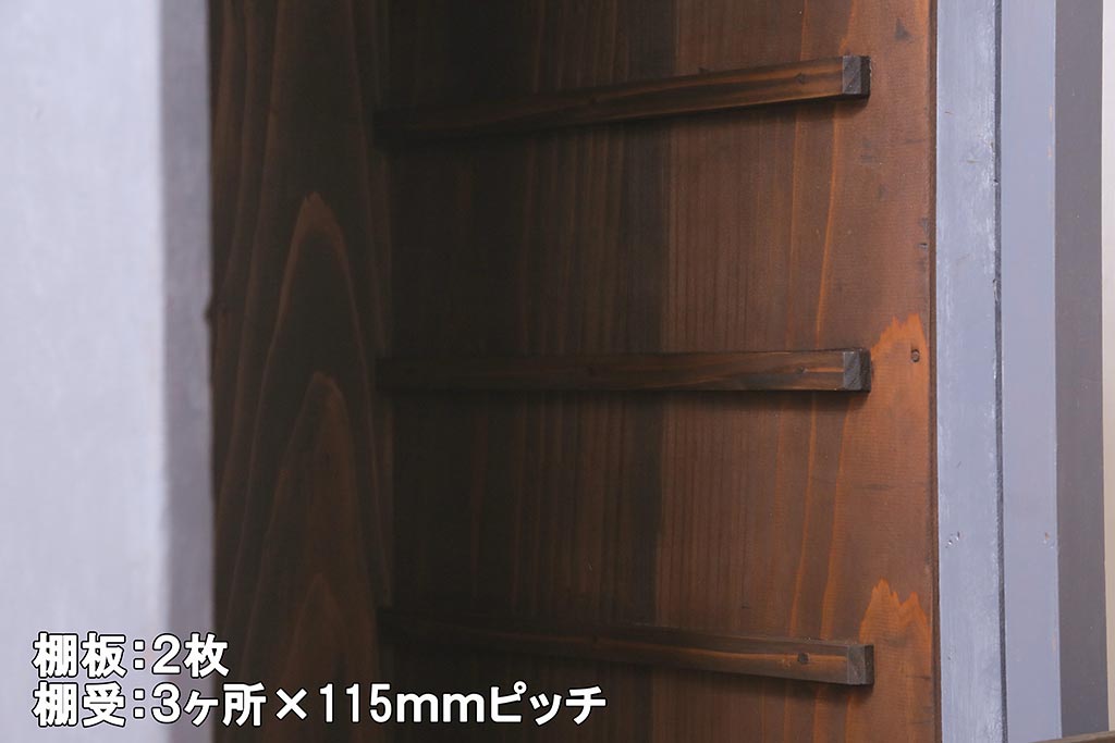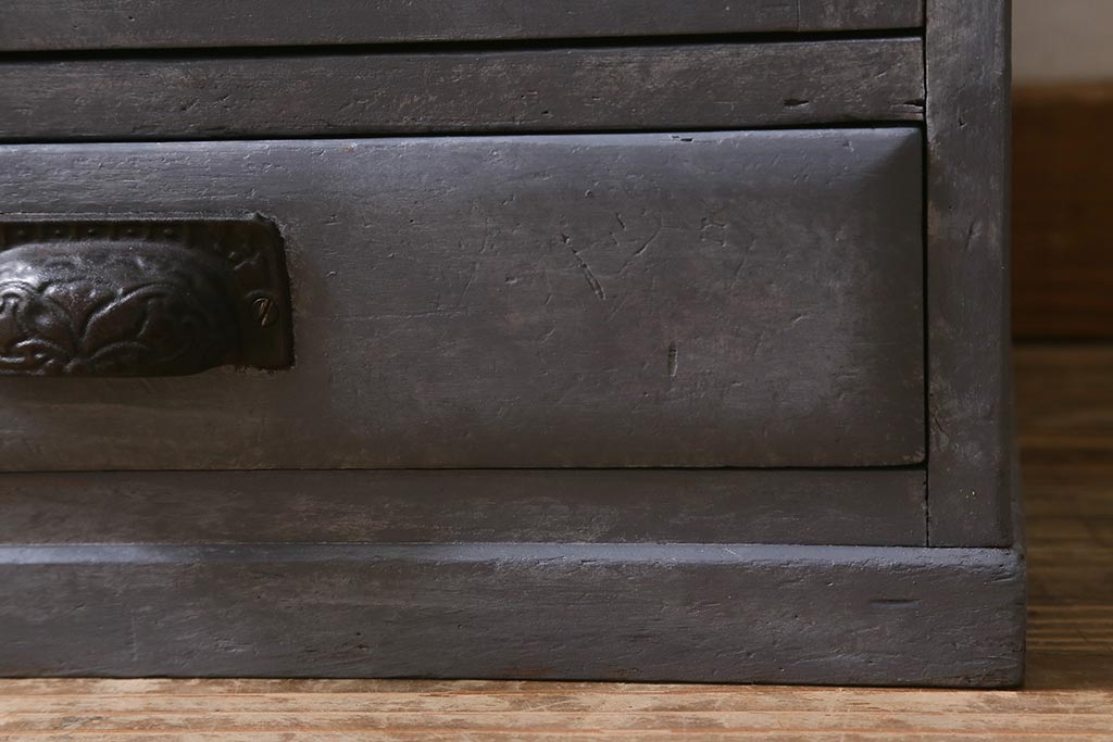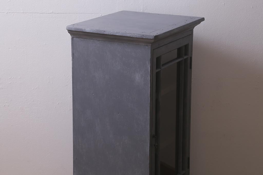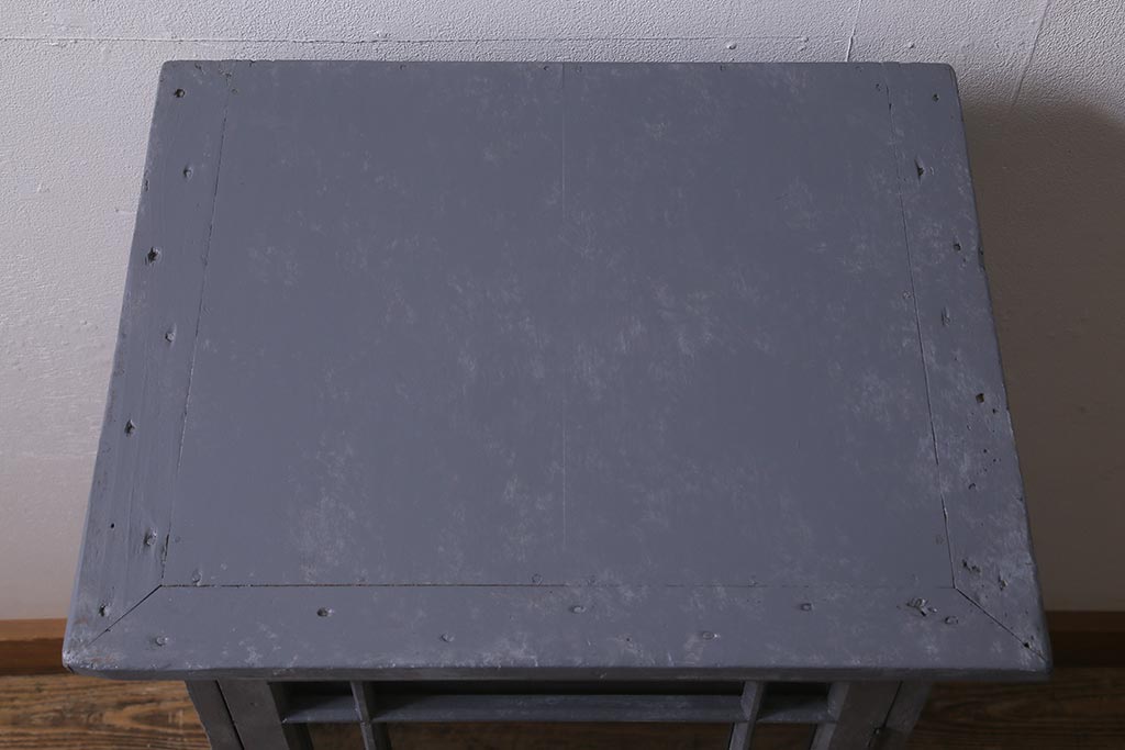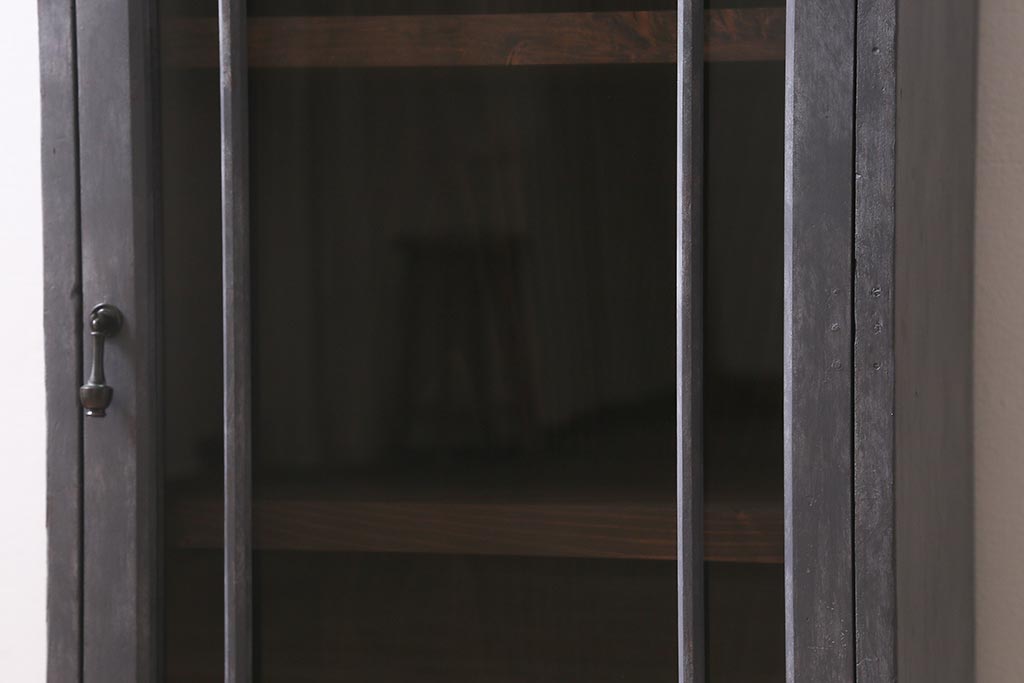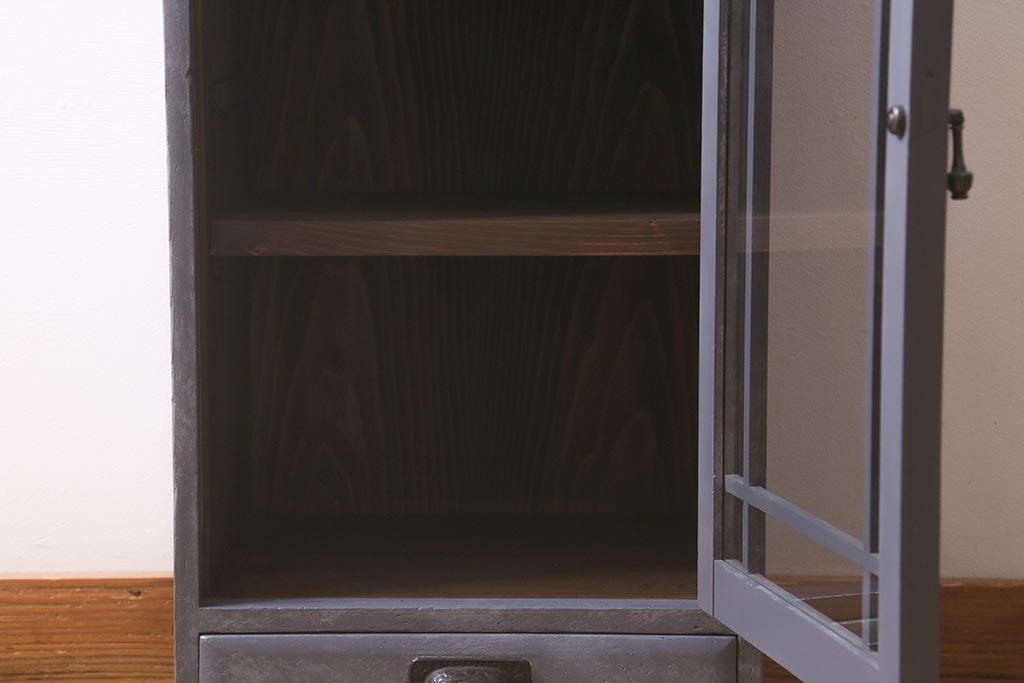 アンティーク家具 和製アンティーク ダークグレーペイントがおしゃれな引き出し付きサイドキャビネット(収納棚、飾り棚、ガラス戸棚)(R-042955)です。