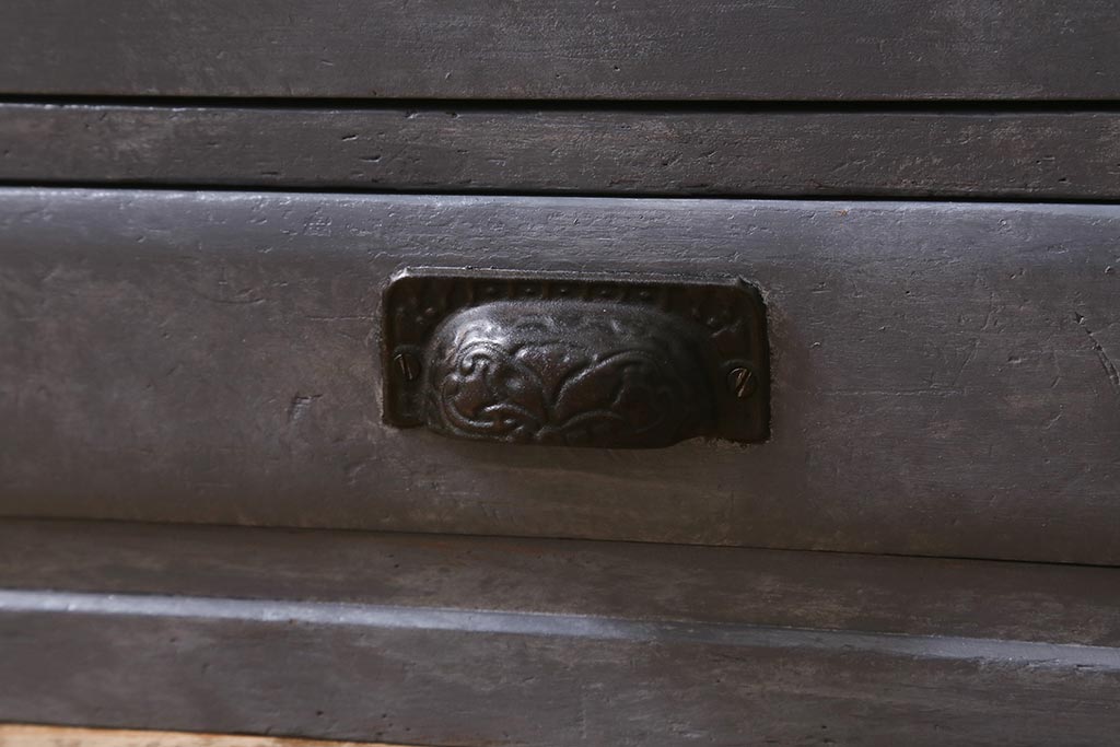 アンティーク家具 和製アンティーク ダークグレーペイントがおしゃれな引き出し付きサイドキャビネット(収納棚、飾り棚、ガラス戸棚)(R-042955)