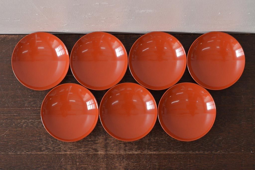 ラフジュ工房> 骨董・美術品> 骨董-漆器 > アンティーク雑貨 大正昭和初期 朱塗稲穂蒔絵木製椀7客セット(漆器、お椀)(R-043092)