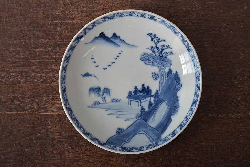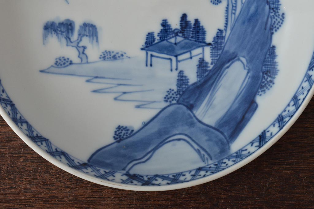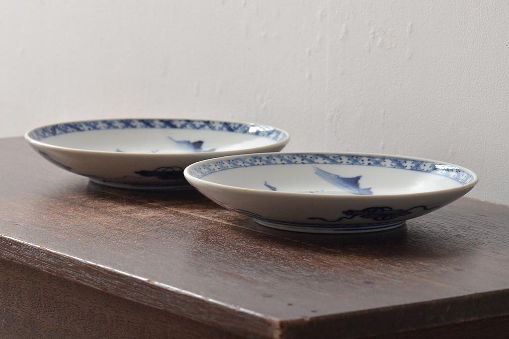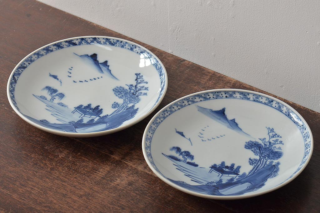 ラフジュ工房> 和食器・茶道具> 皿 > アンティーク雑貨 明治期 山水図 九谷 8寸染付皿2枚セット(和食器、中皿)(R-043106)