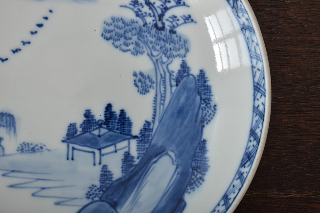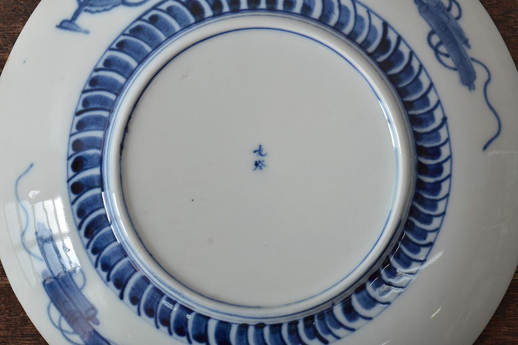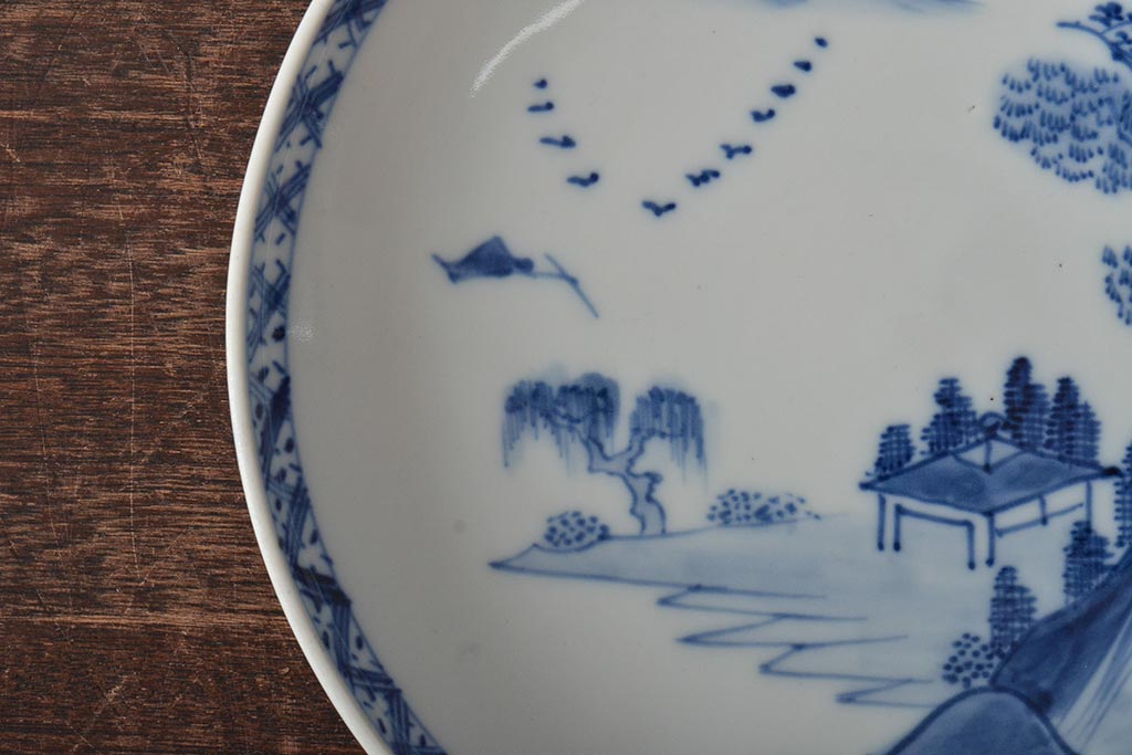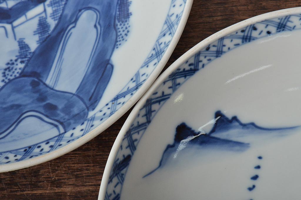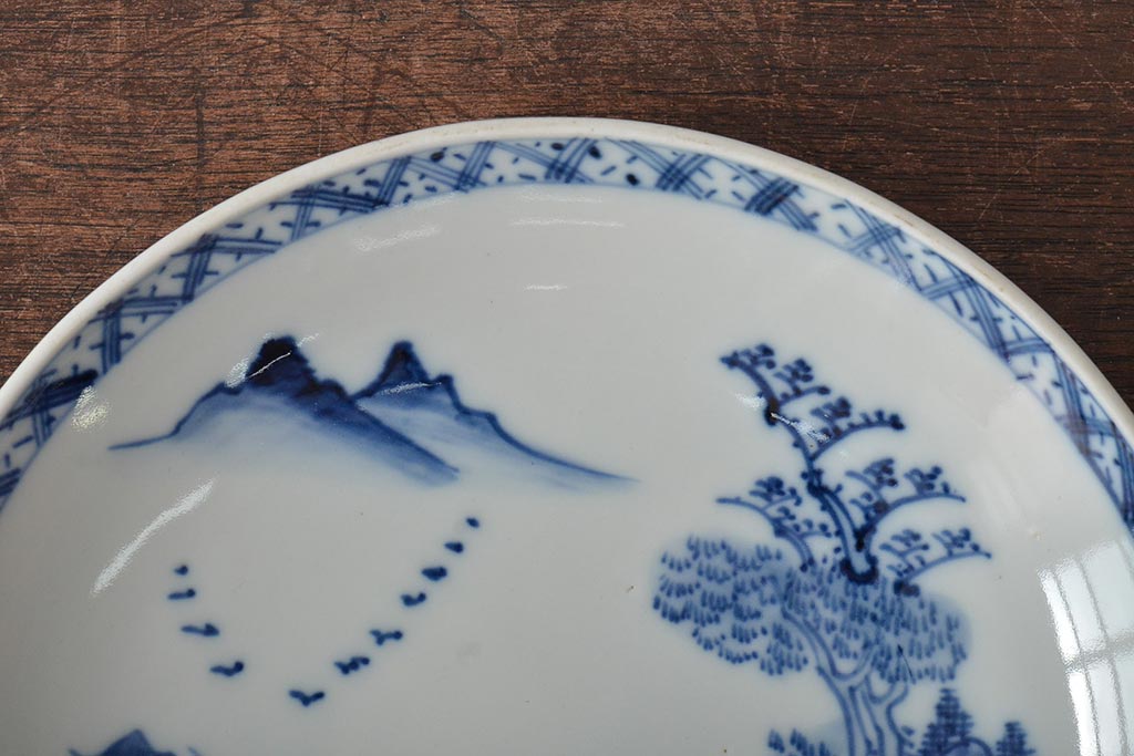 ラフジュ工房> 和食器・茶道具> 皿 > アンティーク雑貨 明治期 山水図 九谷 8寸染付皿2枚セット(和食器、中皿)(R-043106)