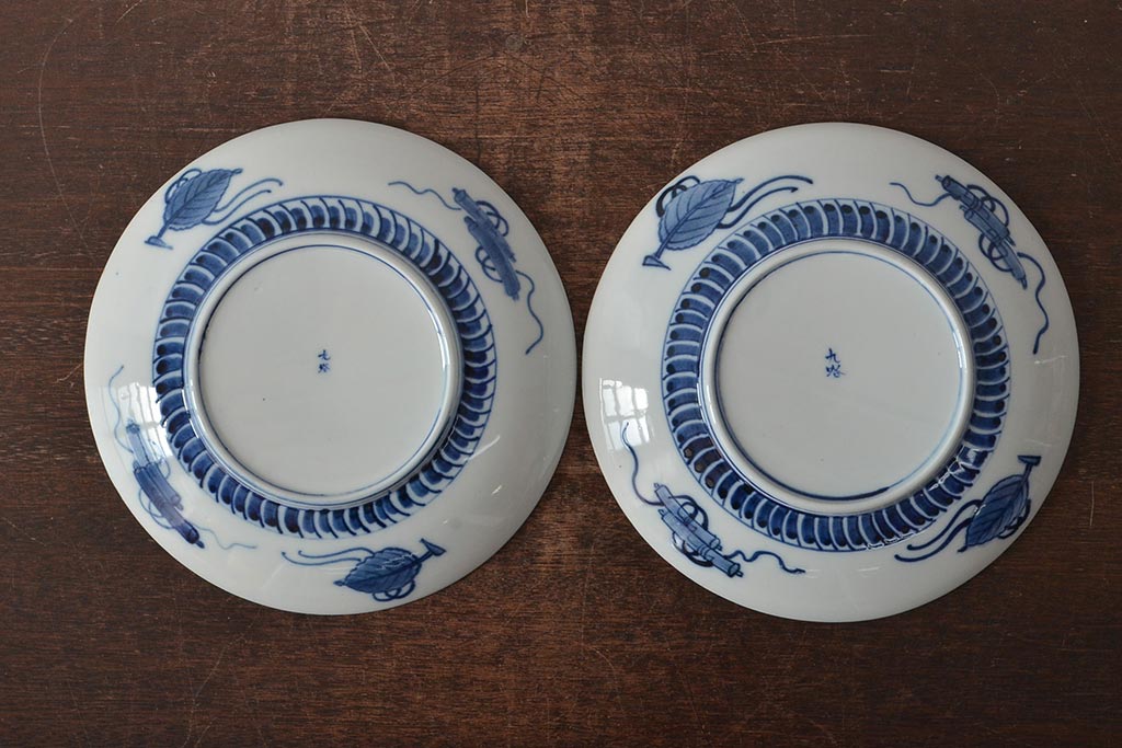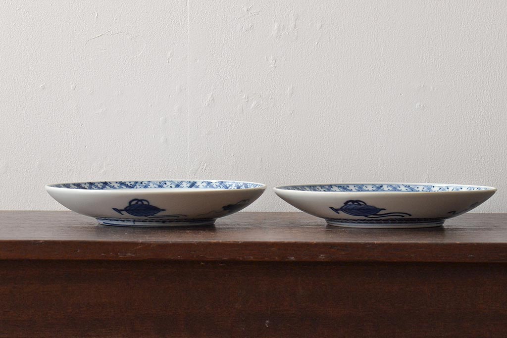 ラフジュ工房> 和食器・茶道具 > アンティーク雑貨 明治期 山水図 九谷 8寸染付皿2枚セット(和食器、中皿)(R-043106)