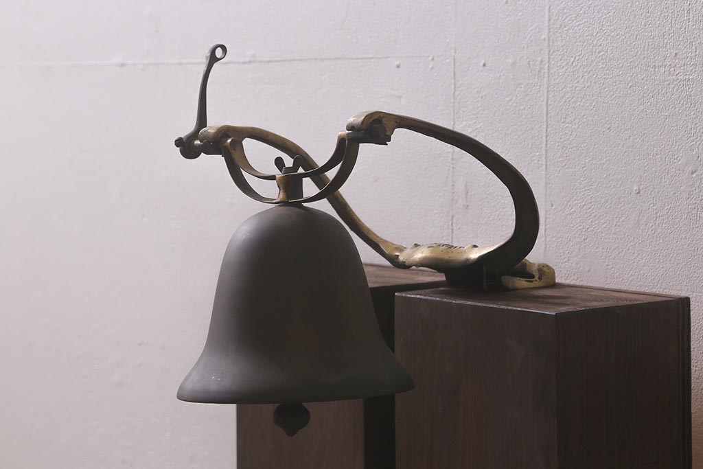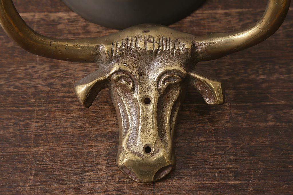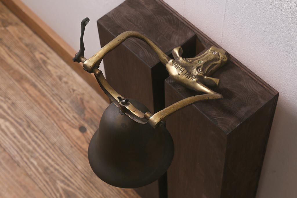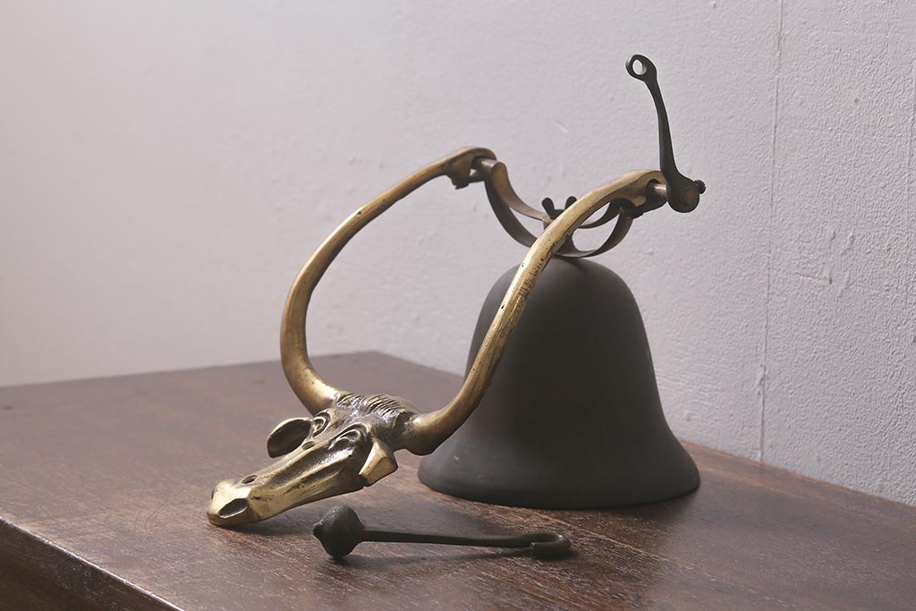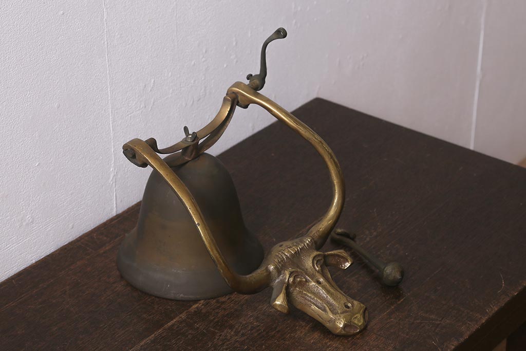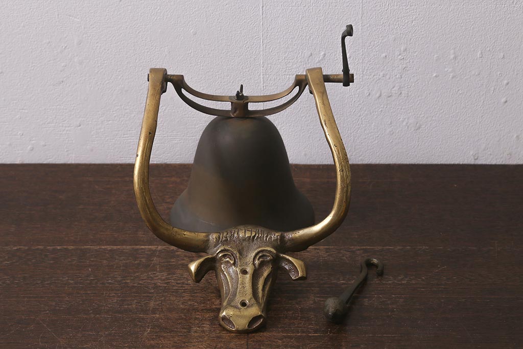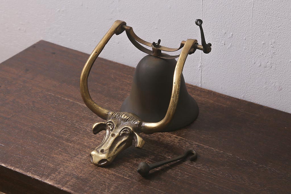 ヴィンテージ雑貨 イギリスビンテージ 真鍮・銅 牛のモチーフが目を引くドアベル(鐘)(R-042870)