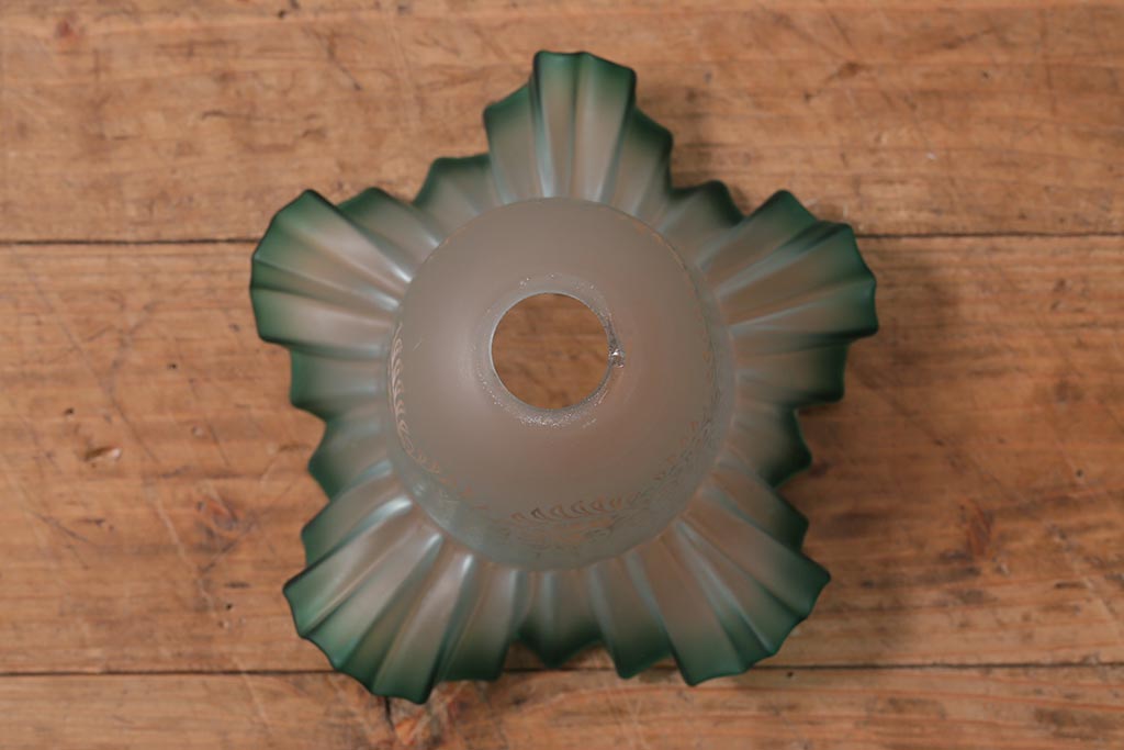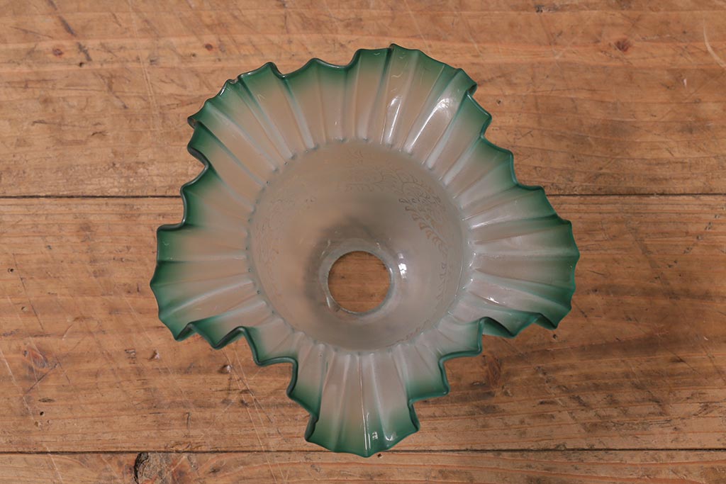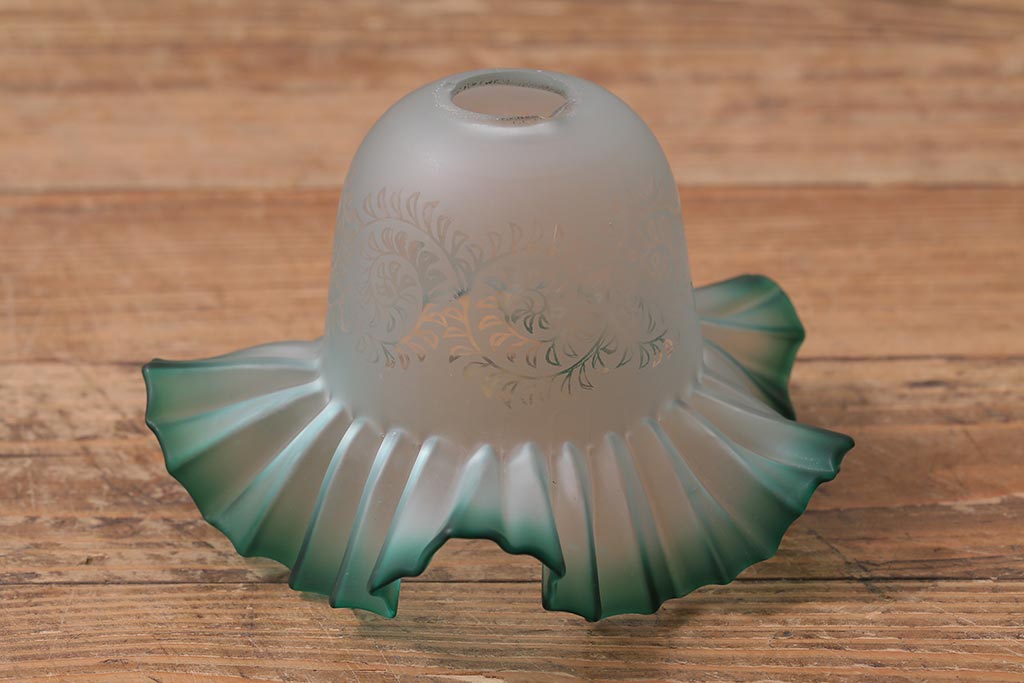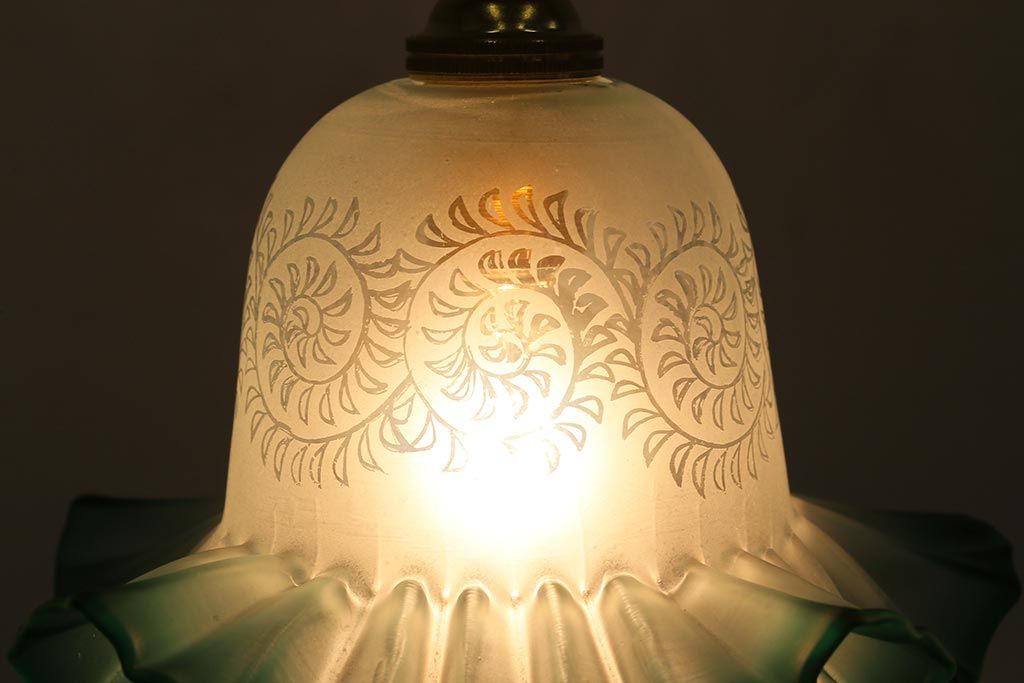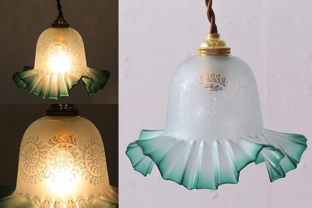 ヴィンテージ照明 イギリスビンテージ エッチングガラスとフリルシェードがお洒落なペンダントライト(ランプシェード、天井照明)(R-043118)です。