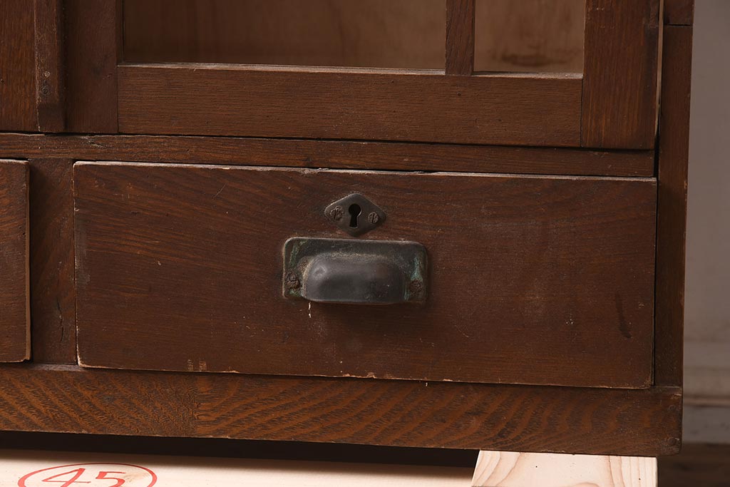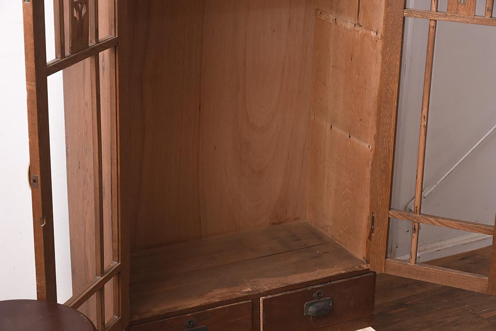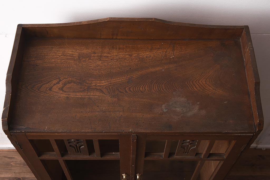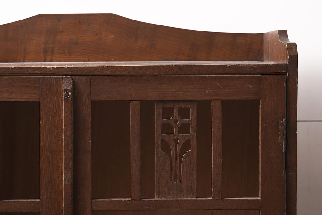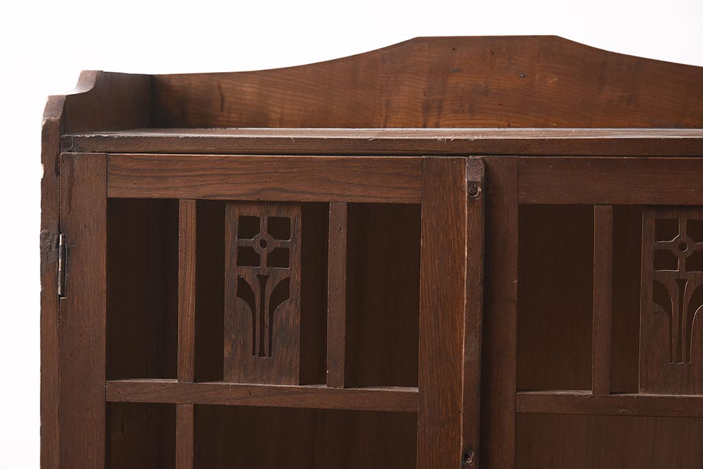 キャビネット・戸棚> 本箱 > 和製アンティーク 大正昭和初期 栓材 大正ロマン 花の透かし彫りが可愛い本箱(ブックケース、収納棚、飾り棚、キャビネット)(R-042904)