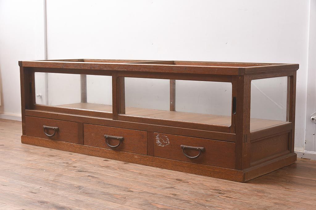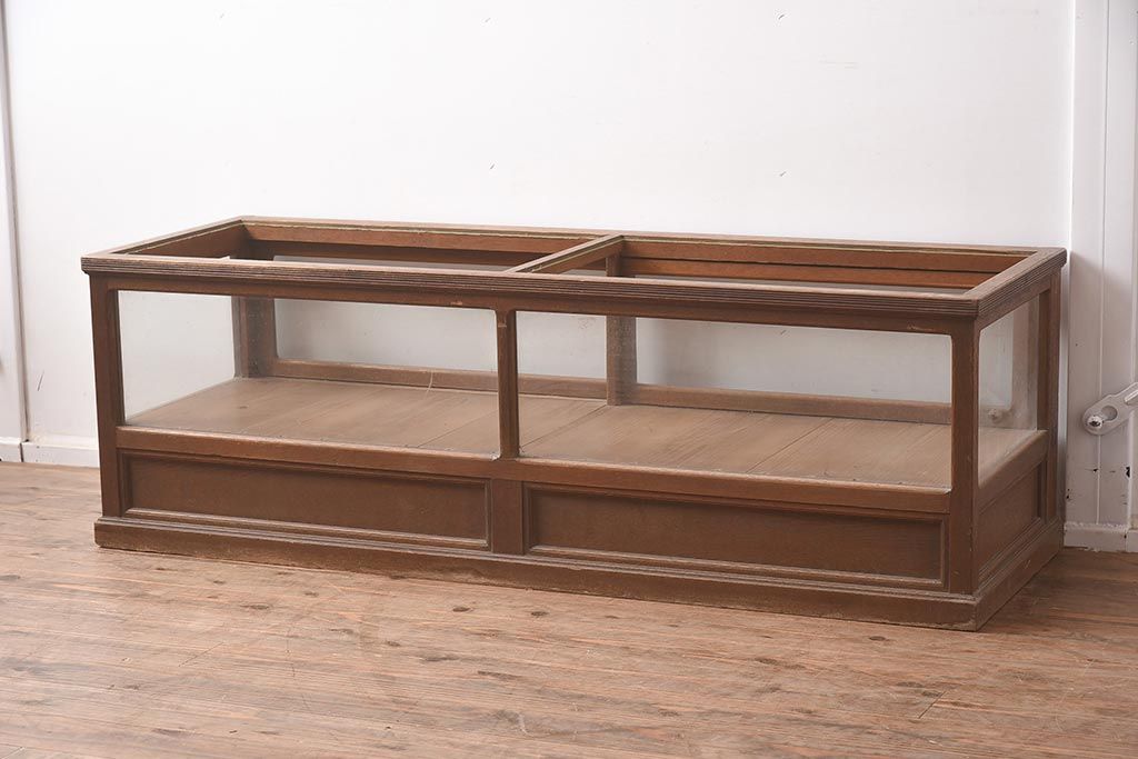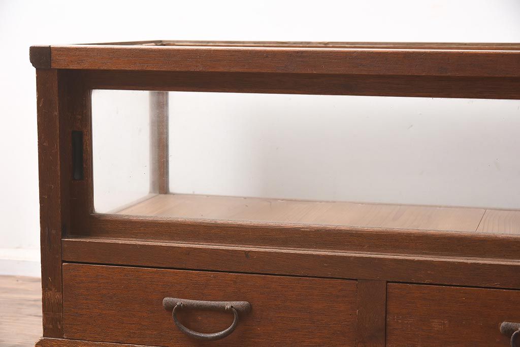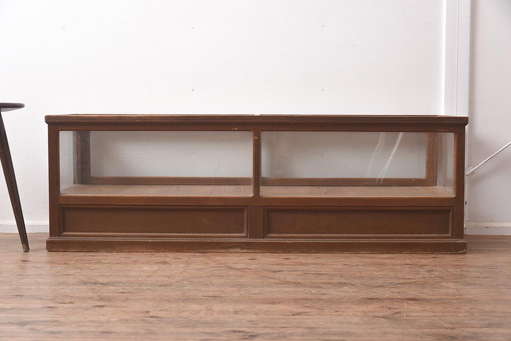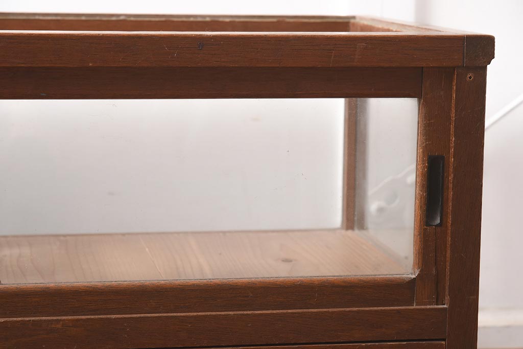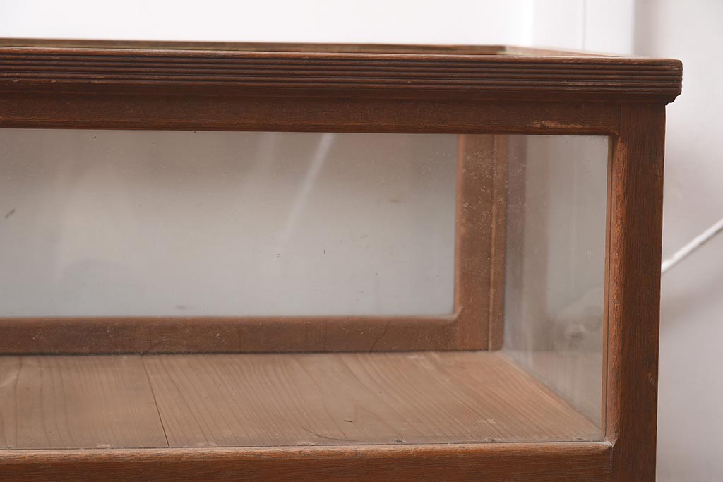 和製アンティーク 昭和レトロ 黄みがかった木色が味わい深いのショーケース(ガラスケース、陳列棚、飾り棚)(R-042898)です。