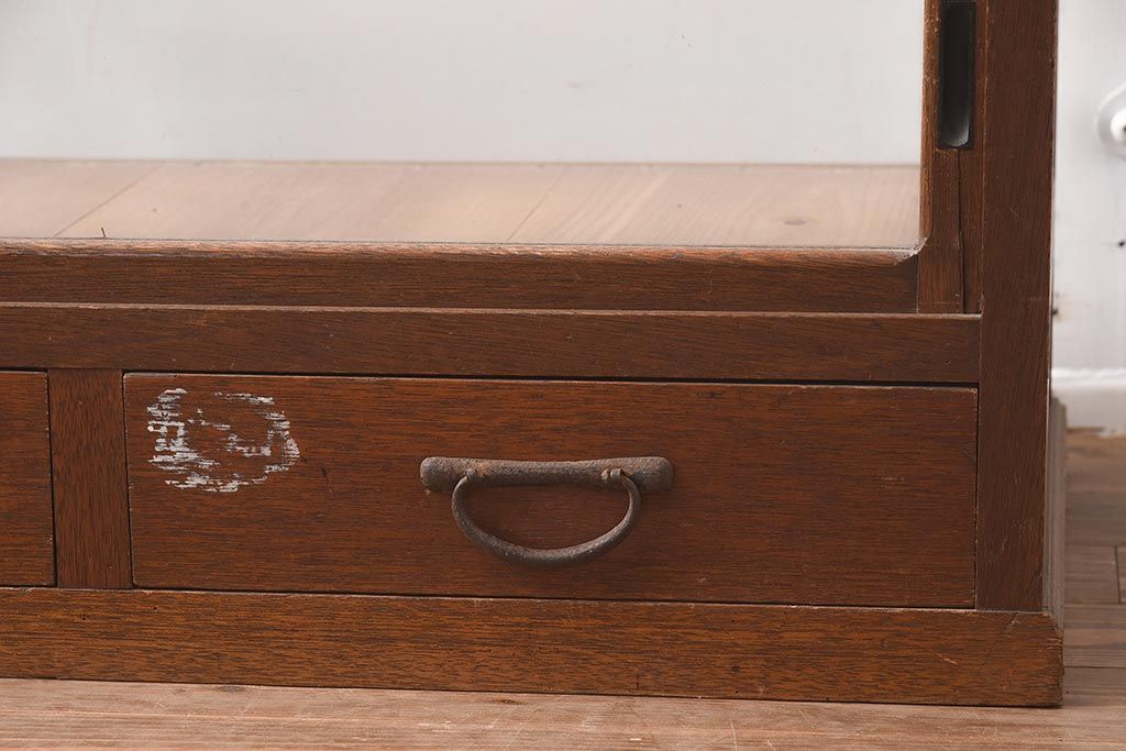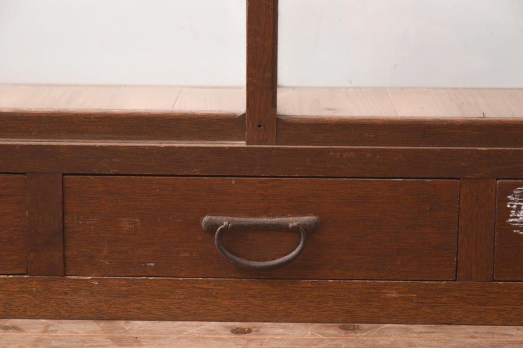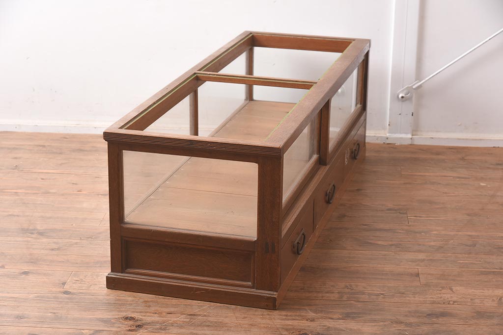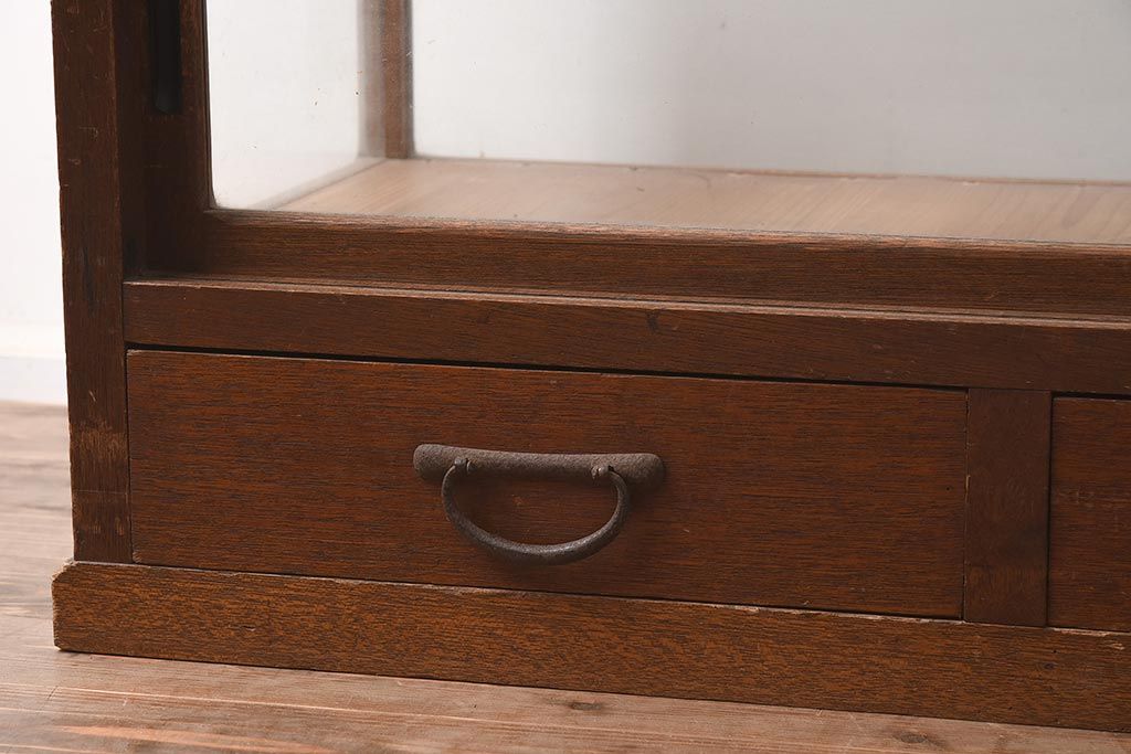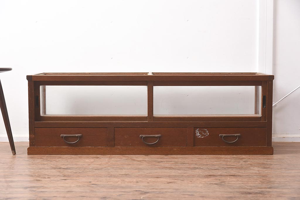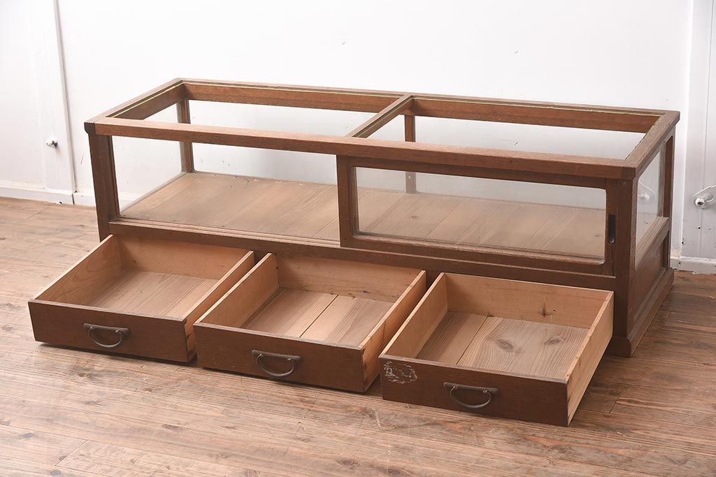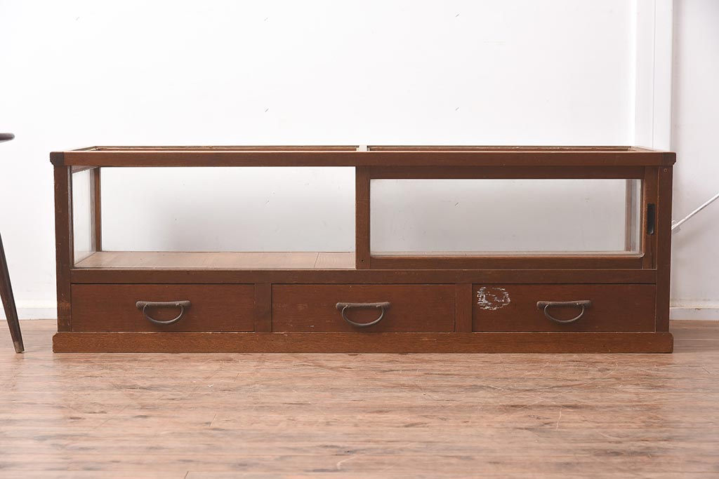 和製アンティーク 昭和レトロ 黄みがかった木色が味わい深いのショーケース(ガラスケース、陳列棚、飾り棚)(R-042898)です。