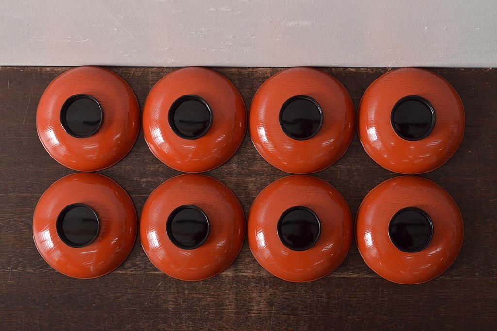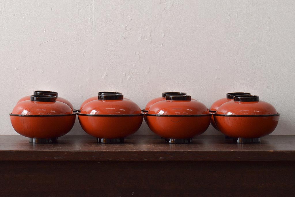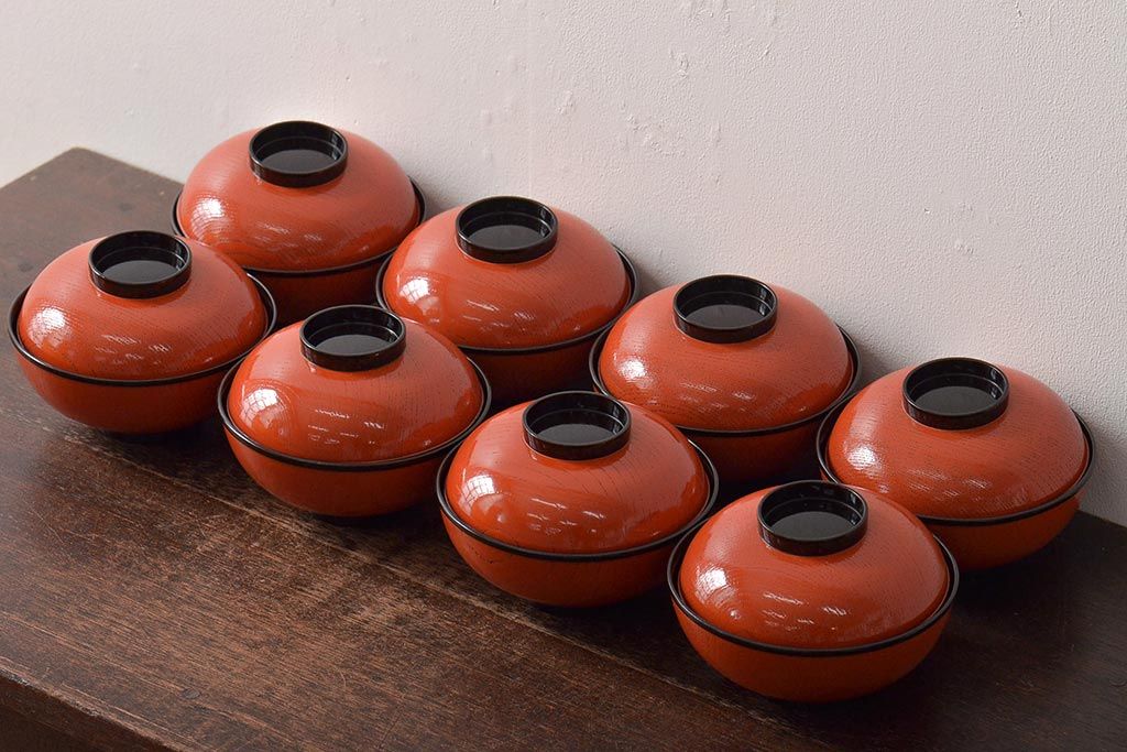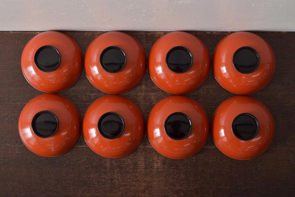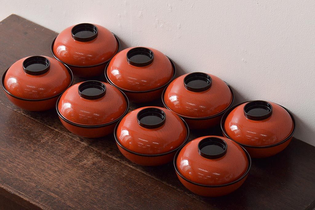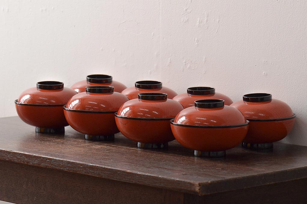 ラフジュ工房> 和食器・茶道具> お椀・茶碗 > アンティーク雑貨 明治大正期 欅製朱塗椀8客セット(漆器、お椀、和食器)(R-043090)