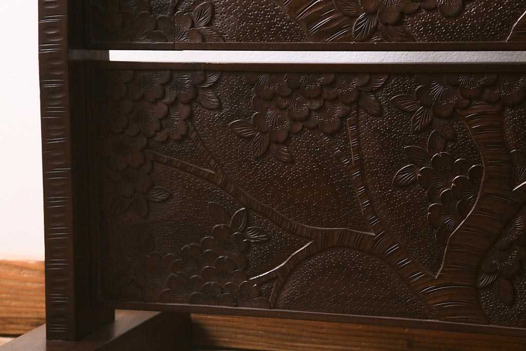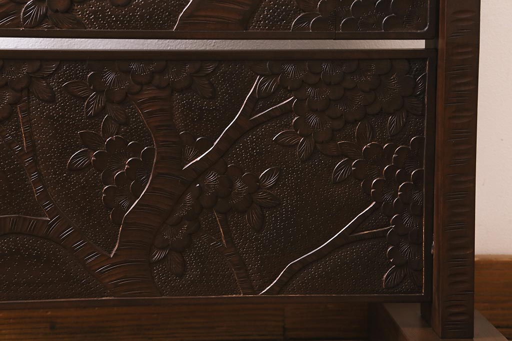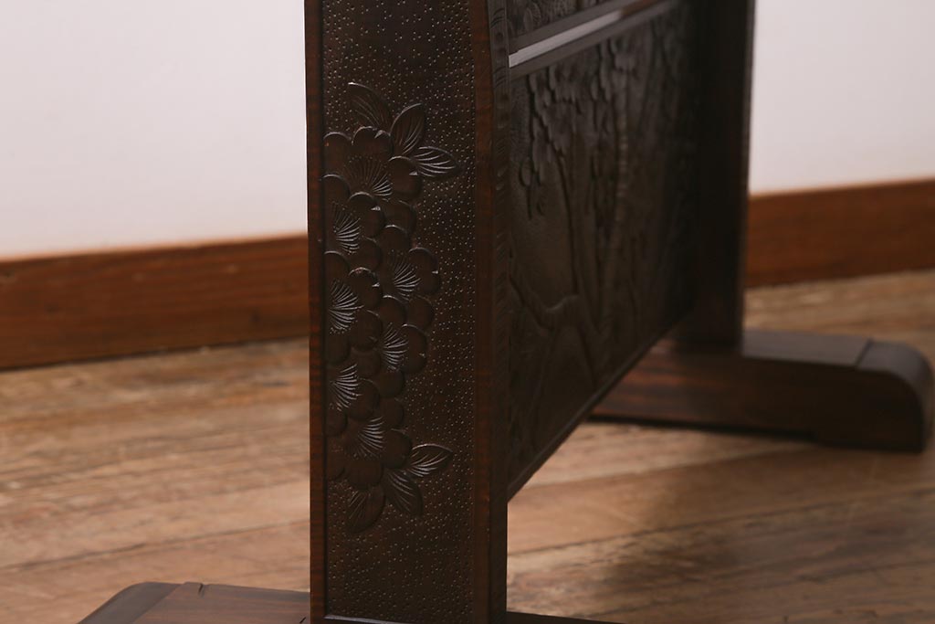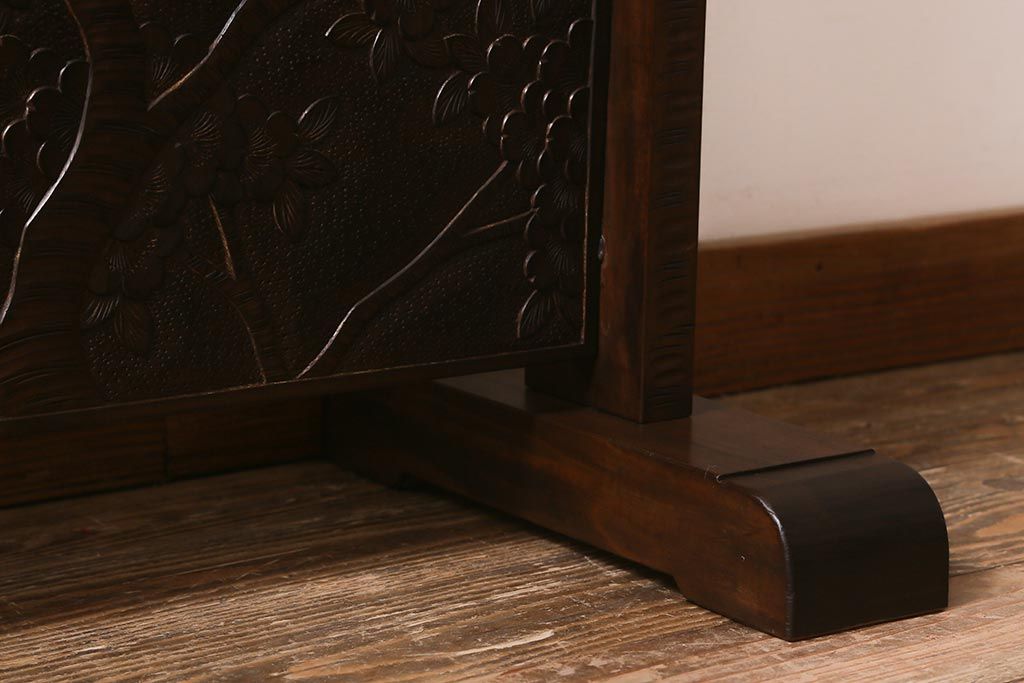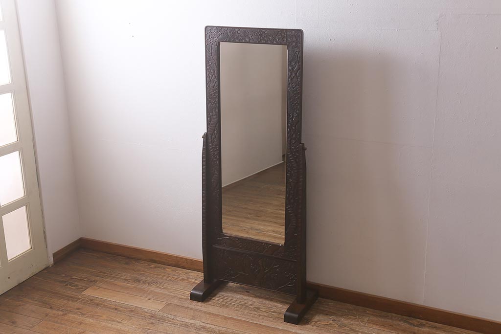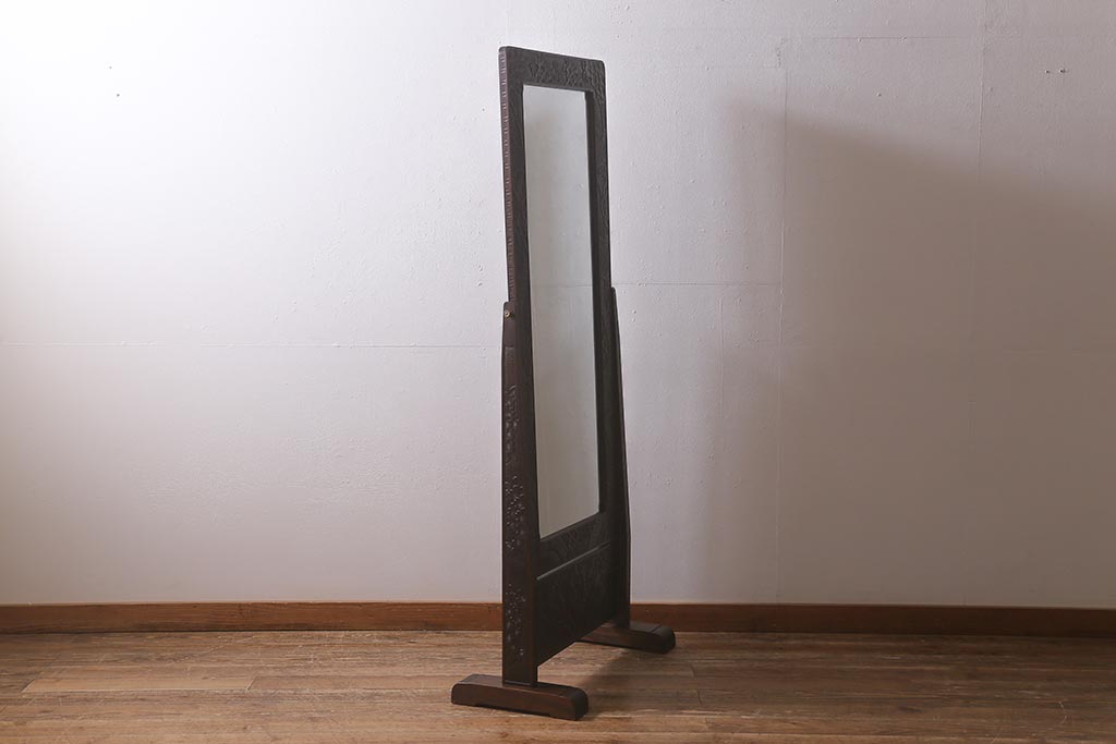 民芸家具 > ビンテージ家具 伝統工芸 軽井沢彫り 桜の彫りが目を引く姿見(鏡、ミラー、ヴィンテージ)(R-043126)