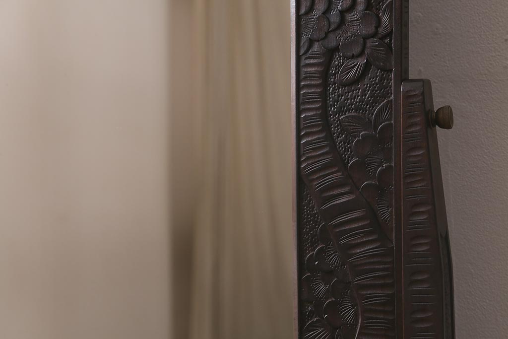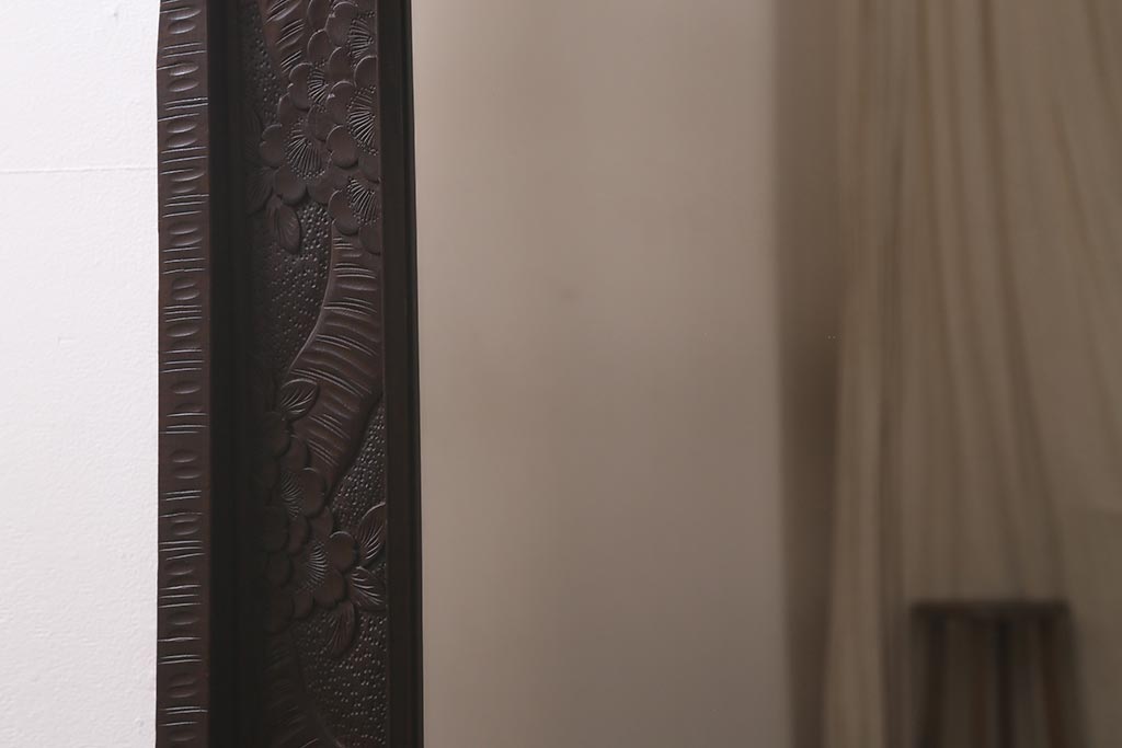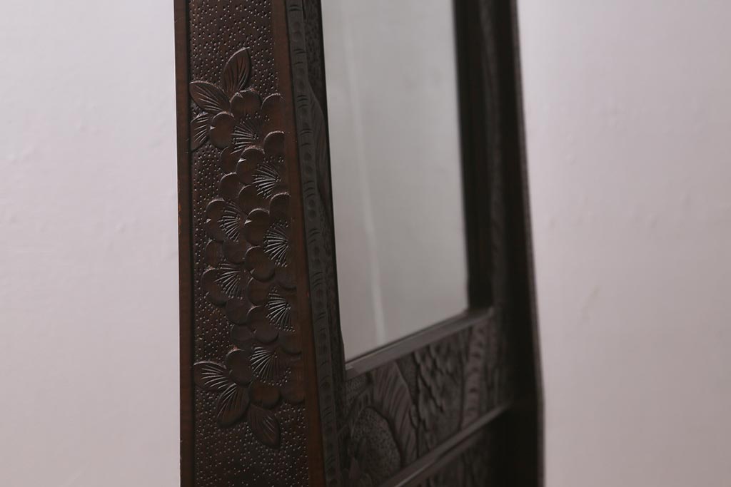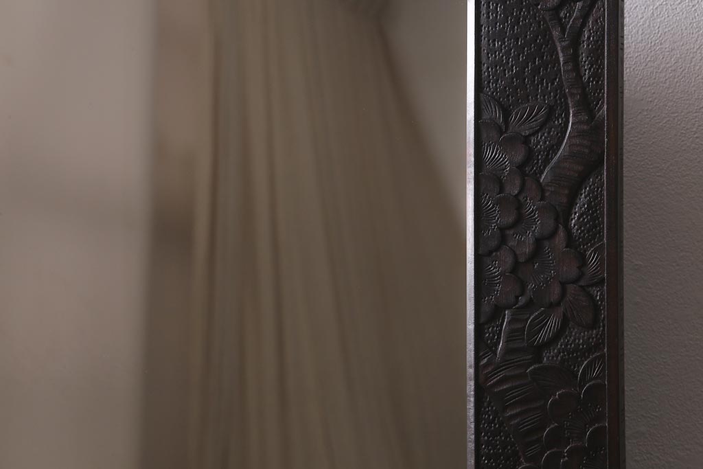 鏡 > ビンテージ家具 伝統工芸 軽井沢彫り 桜の彫りが目を引く姿見(鏡、ミラー、ヴィンテージ)(R-043126)