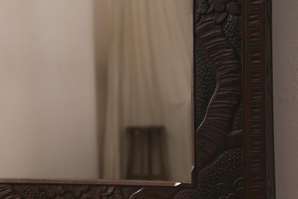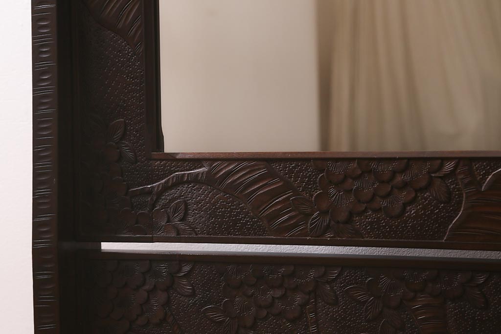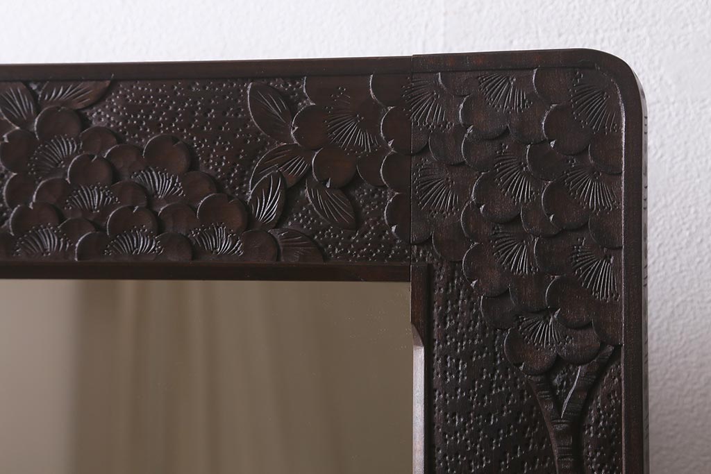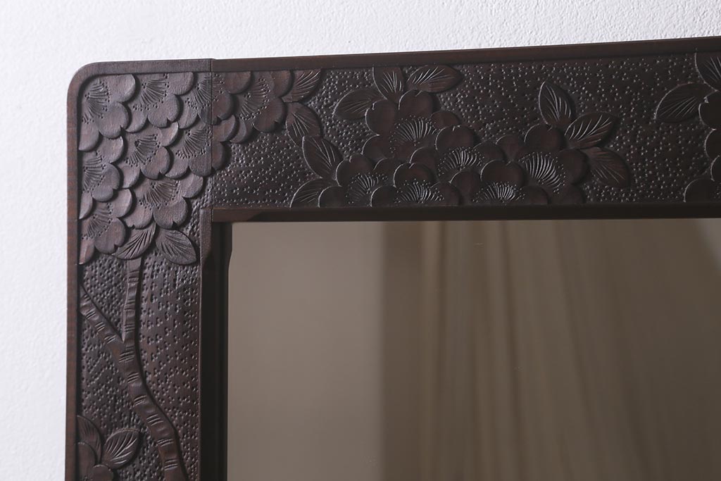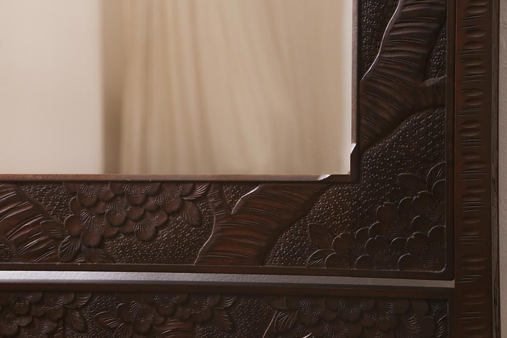 鏡 > ビンテージ家具 伝統工芸 軽井沢彫り 桜の彫りが目を引く姿見(鏡、ミラー、ヴィンテージ)(R-043126)