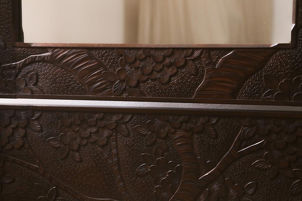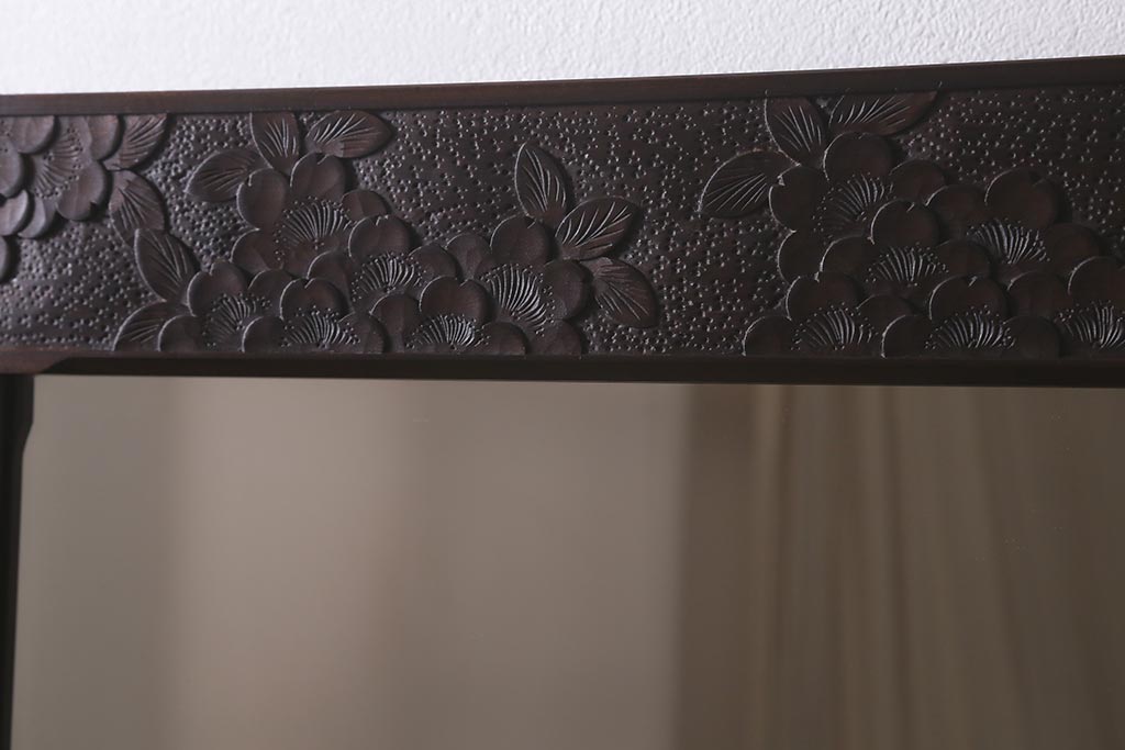 鏡> 姿見 > ビンテージ家具 伝統工芸 軽井沢彫り 桜の彫りが目を引く姿見(鏡、ミラー、ヴィンテージ)(R-043126)