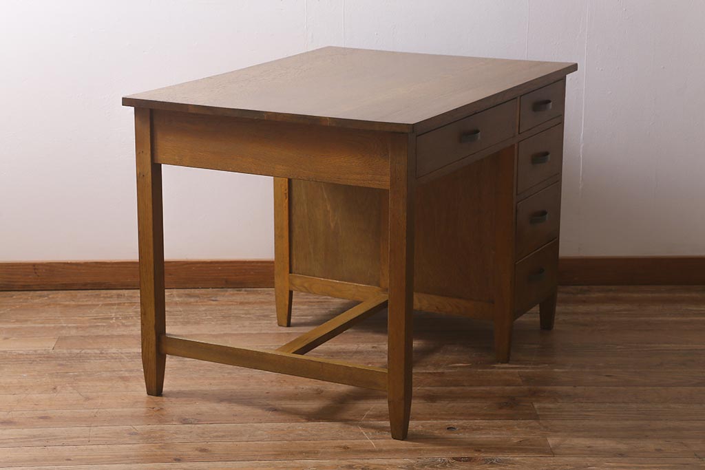 レトロ家具 ナラ材 シンプルで懐かしい片袖デスク(ワークデスク、在宅ワーク、在宅用、片袖机)(R-037169)