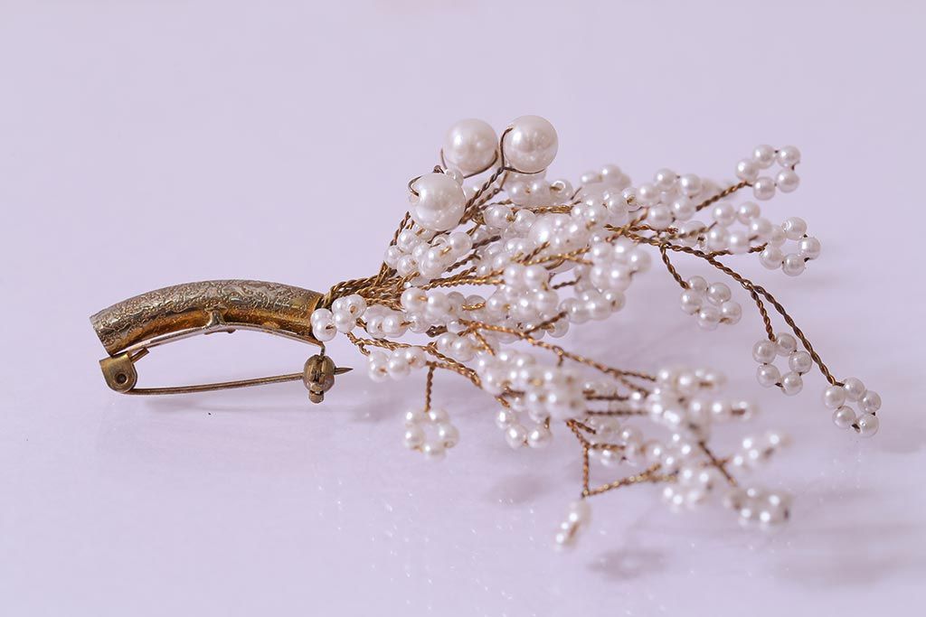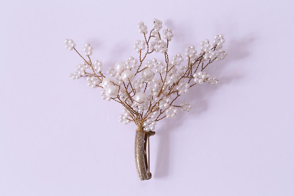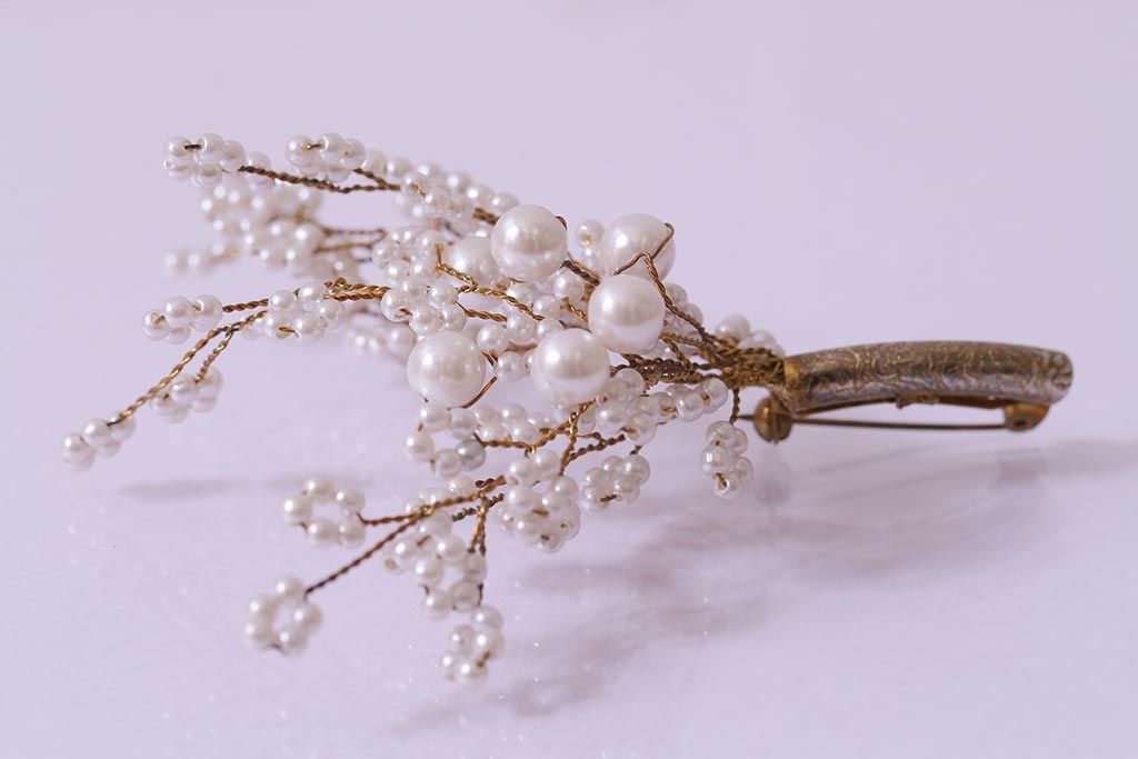 ラフジュ工房> アクセサリー > ヴィンテージアクセサリー 梅の木のような白いビーズのビンテージブローチ(R-043006)