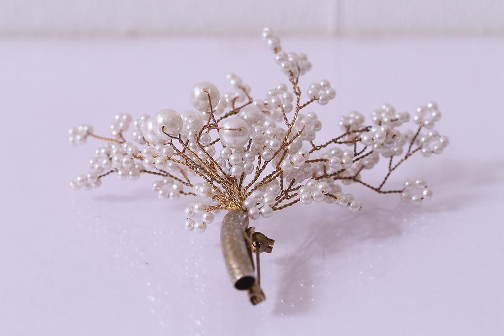 ヴィンテージアクセサリー 梅の木のような白いビーズのビンテージブローチ(R-043006)