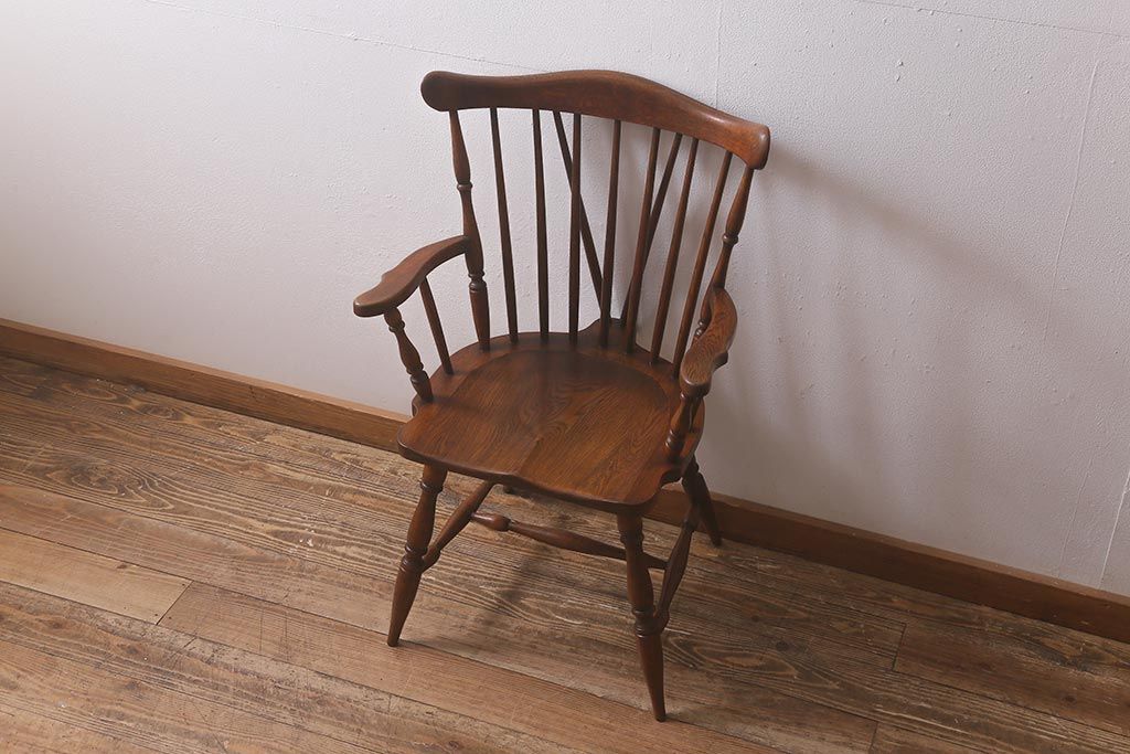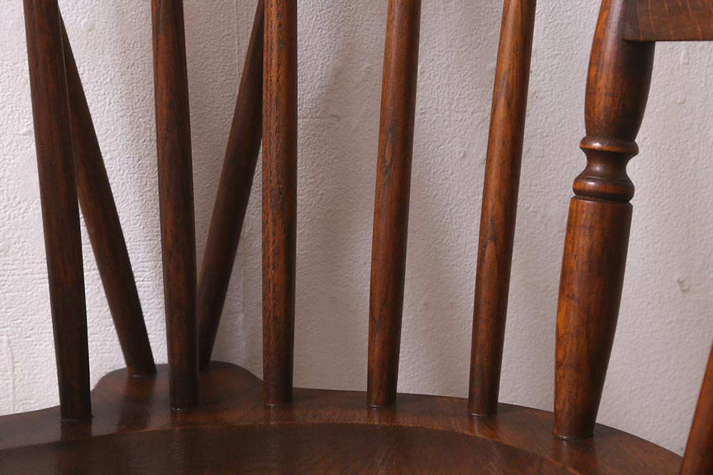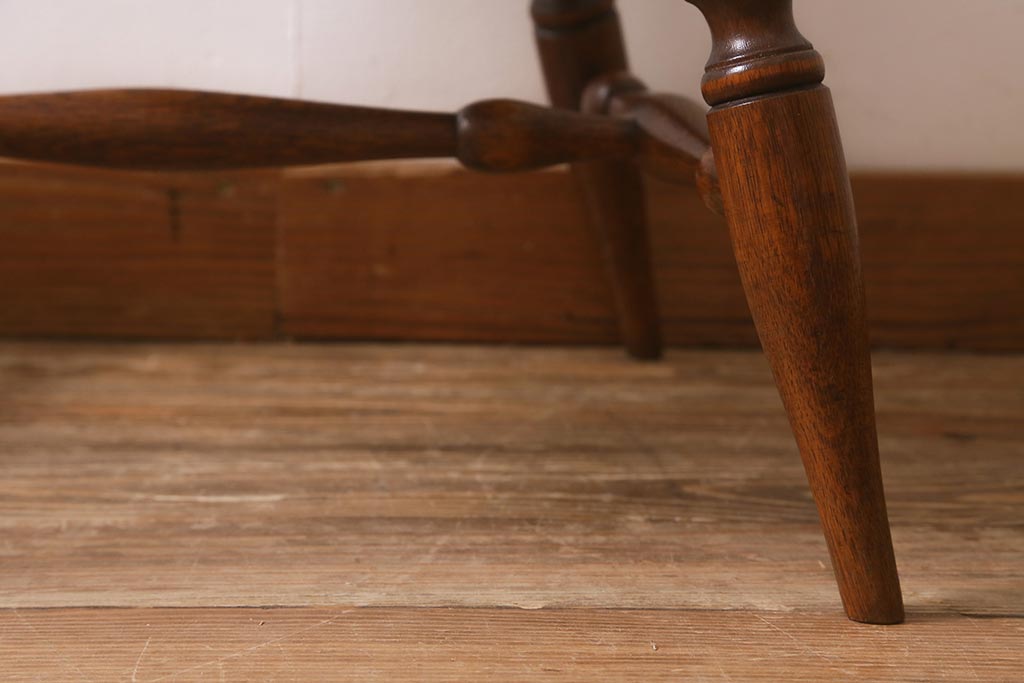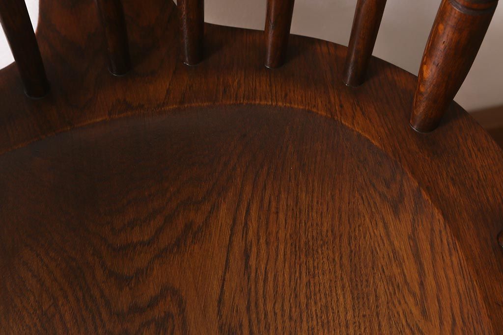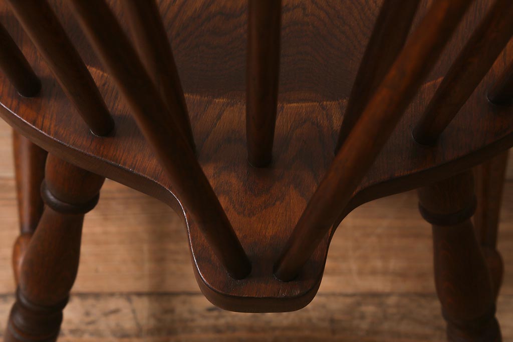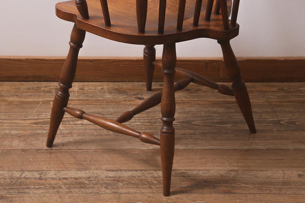 椅子・ベンチ> アームチェア > イギリスビンテージ オーク材 脚の挽き加工が上品なアームチェア(ダイニングチェア、板座チェア、ウィンザーチェア、ウインザーチェア)(R-043275)