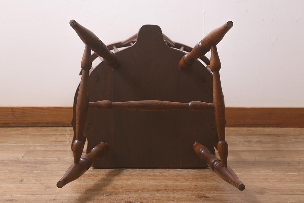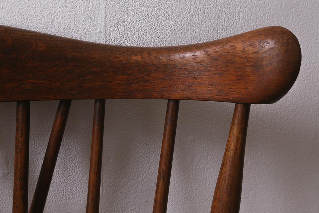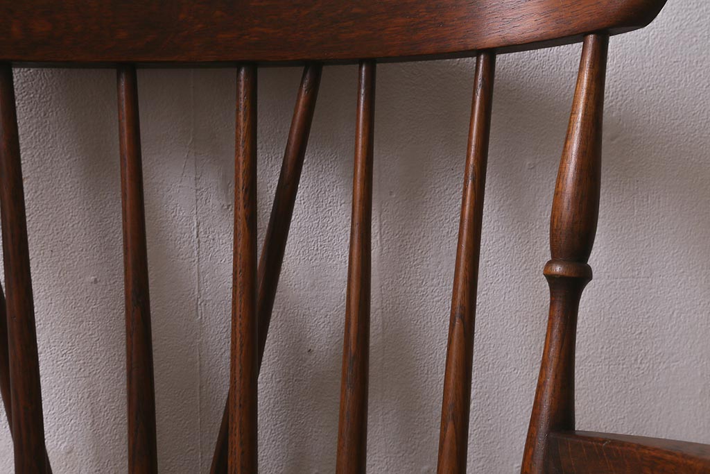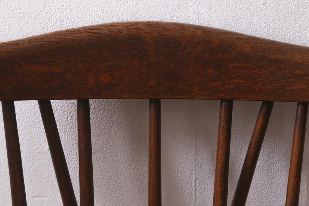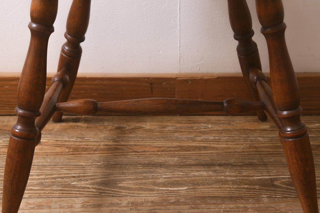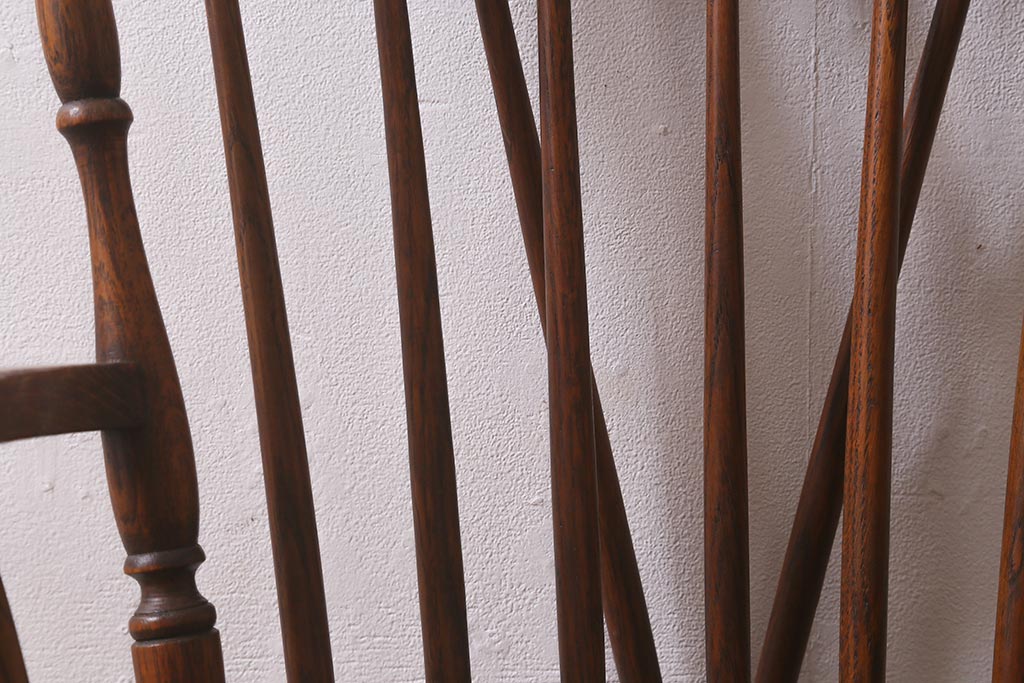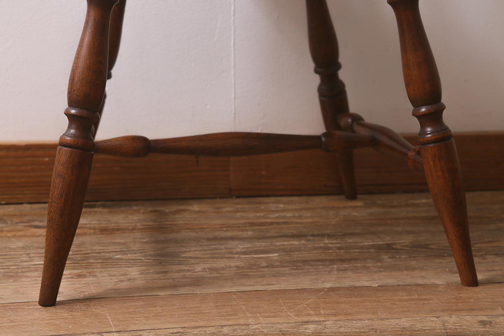 椅子・ベンチ> アームチェア > イギリスビンテージ オーク材 脚の挽き加工が上品なアームチェア(ダイニングチェア、板座チェア、ウィンザーチェア、ウインザーチェア)(R-043275)
