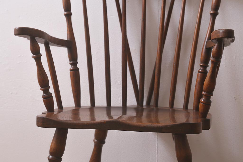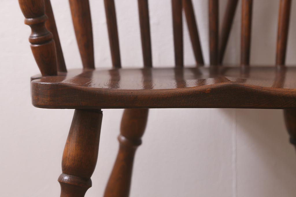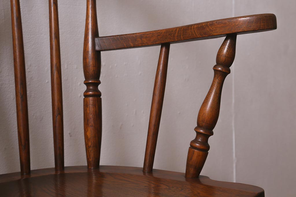 椅子・ベンチ> ウィンザーチェア > イギリスビンテージ オーク材 脚の挽き加工が上品なアームチェア(ダイニングチェア、板座チェア、ウィンザーチェア、ウインザーチェア)(R-043275)
