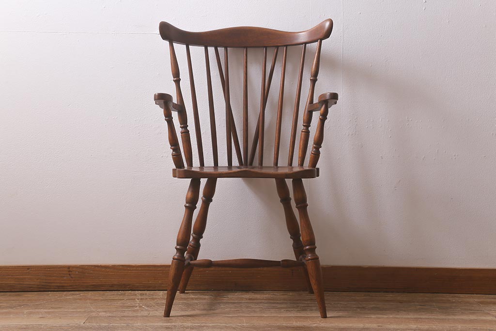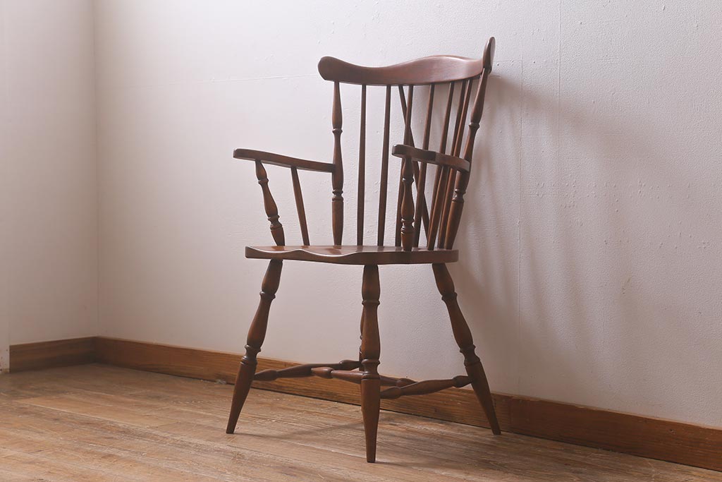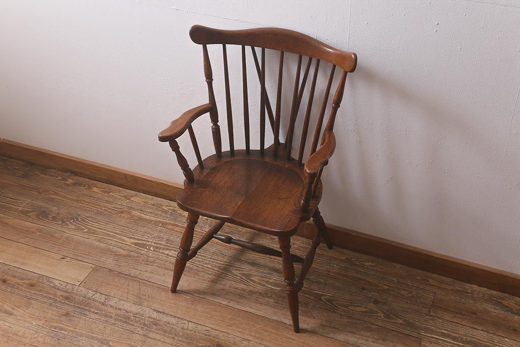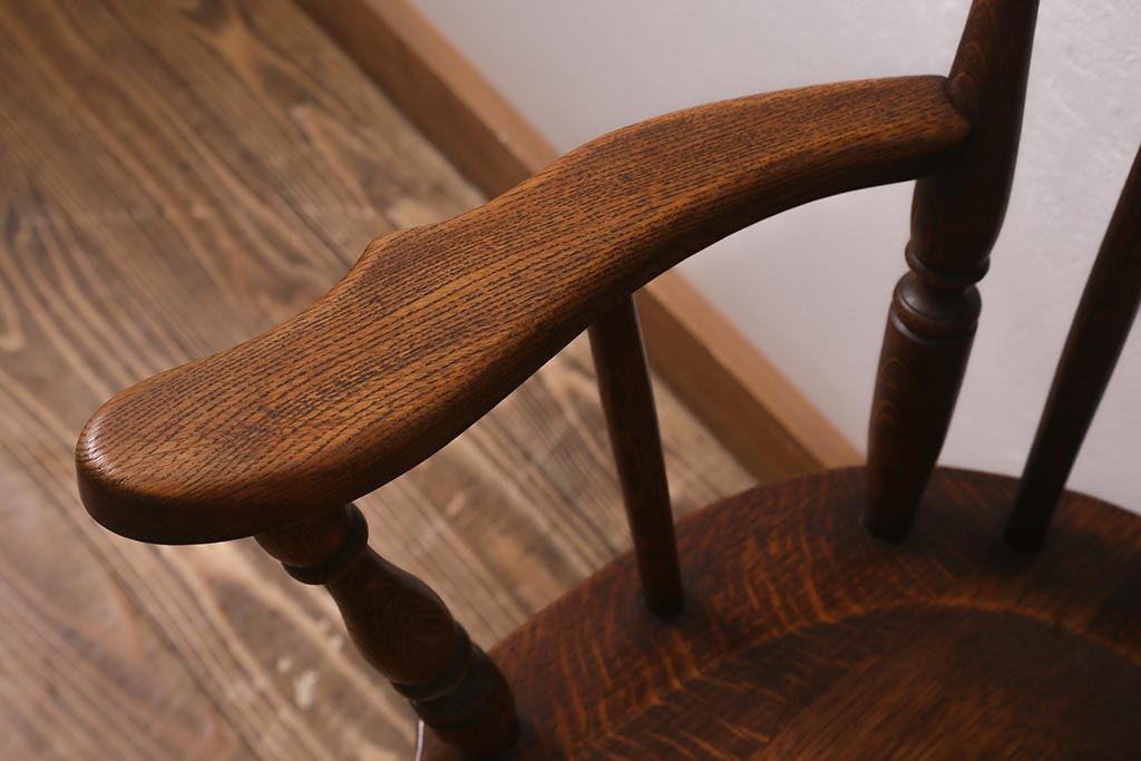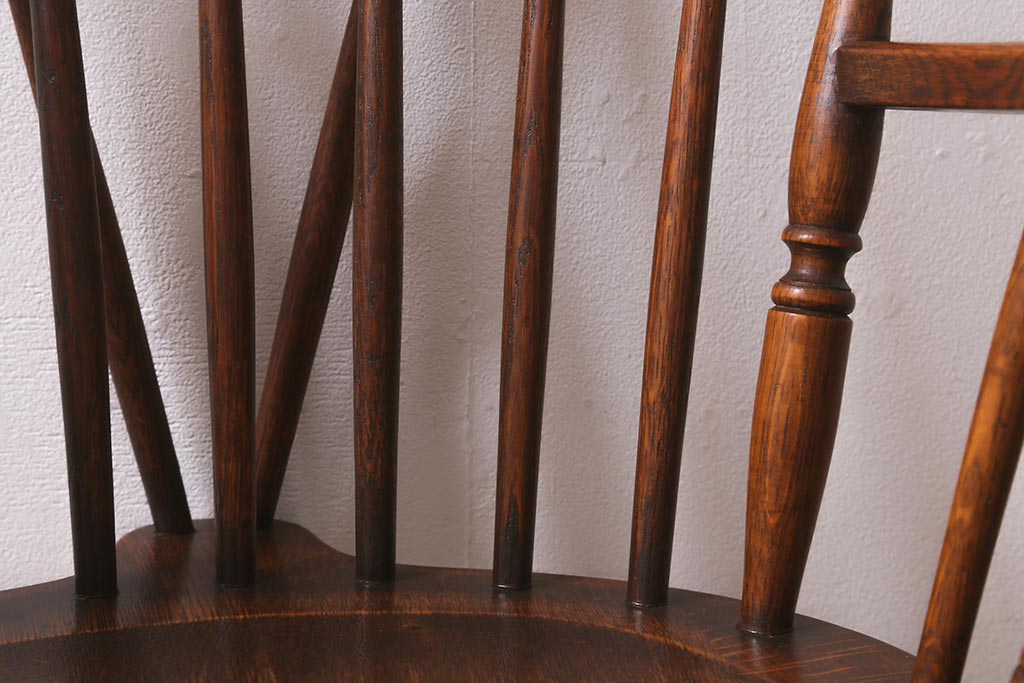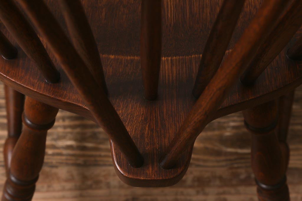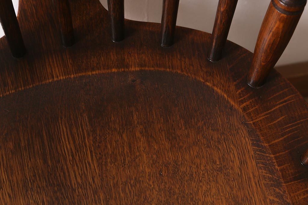 椅子・ベンチ> ダイニングチェア > イギリスビンテージ オーク材 脚の挽き加工が上品なアームチェア(ダイニングチェア、板座チェア、ウィンザーチェア、ウインザーチェア)(R-043276)