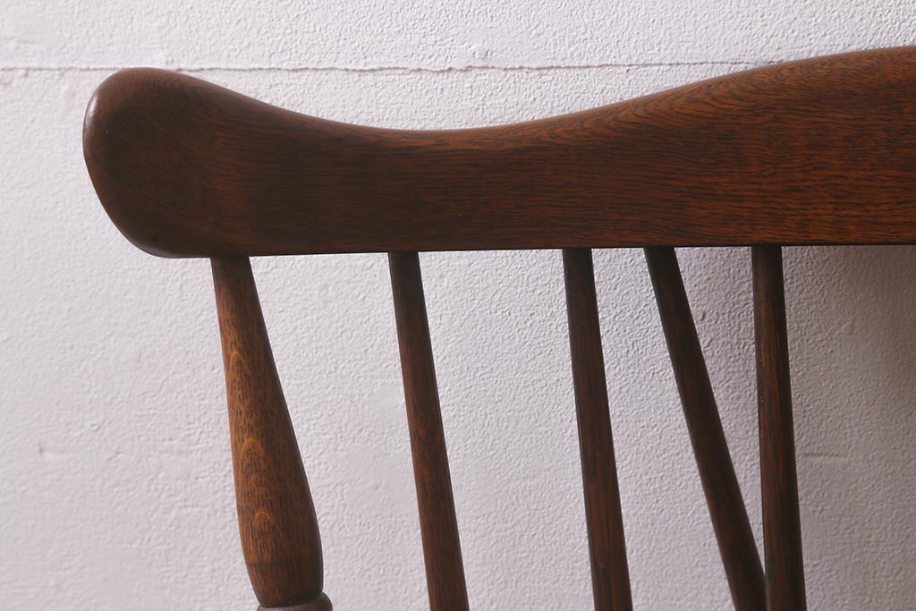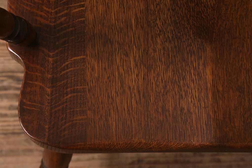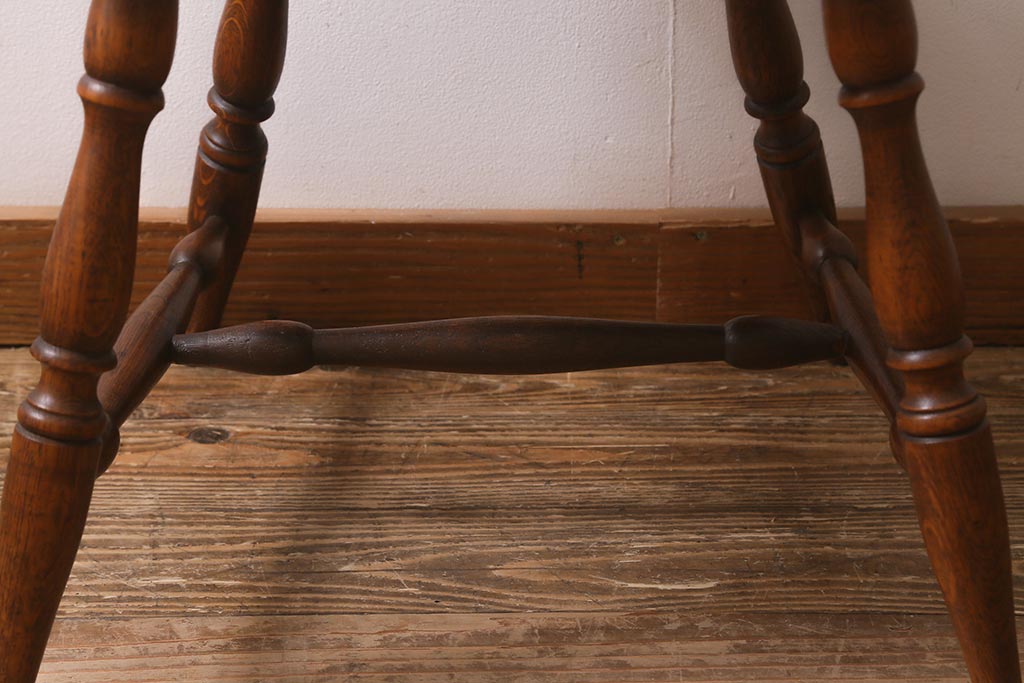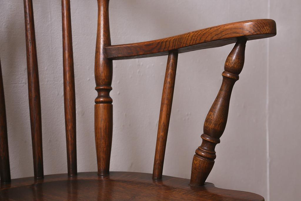 椅子・ベンチ> アームチェア > イギリスビンテージ オーク材 脚の挽き加工が上品なアームチェア(ダイニングチェア、板座チェア、ウィンザーチェア、ウインザーチェア)(R-043276)