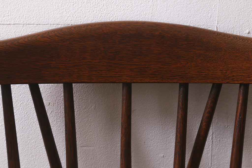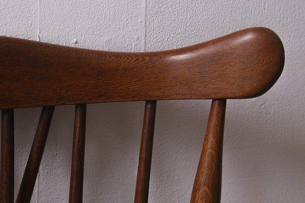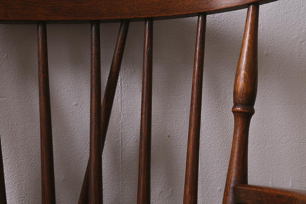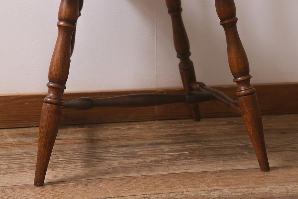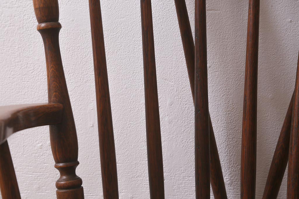 椅子・ベンチ> アームチェア > イギリスビンテージ オーク材 脚の挽き加工が上品なアームチェア(ダイニングチェア、板座チェア、ウィンザーチェア、ウインザーチェア)(R-043276)
