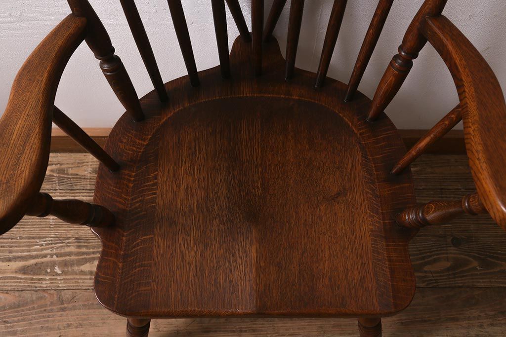 イギリスビンテージ オーク材 脚の挽き加工が上品なアームチェア(ダイニングチェア、板座チェア、ウィンザーチェア、ウインザーチェア)(R-043276)