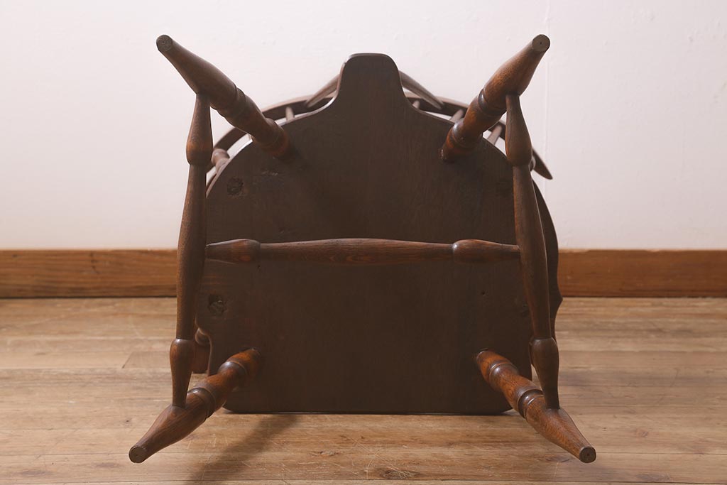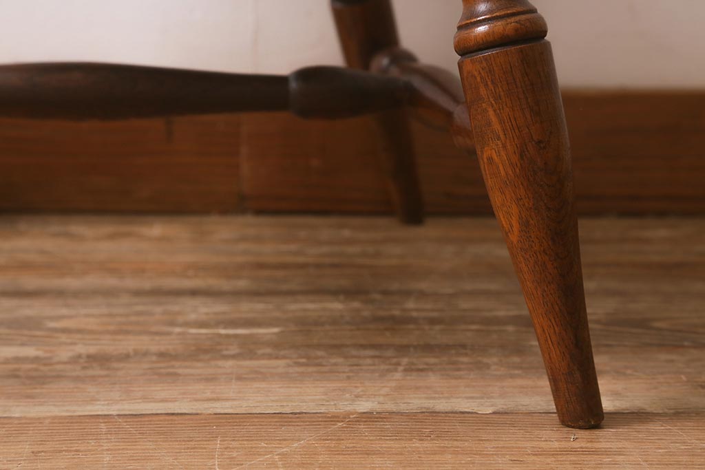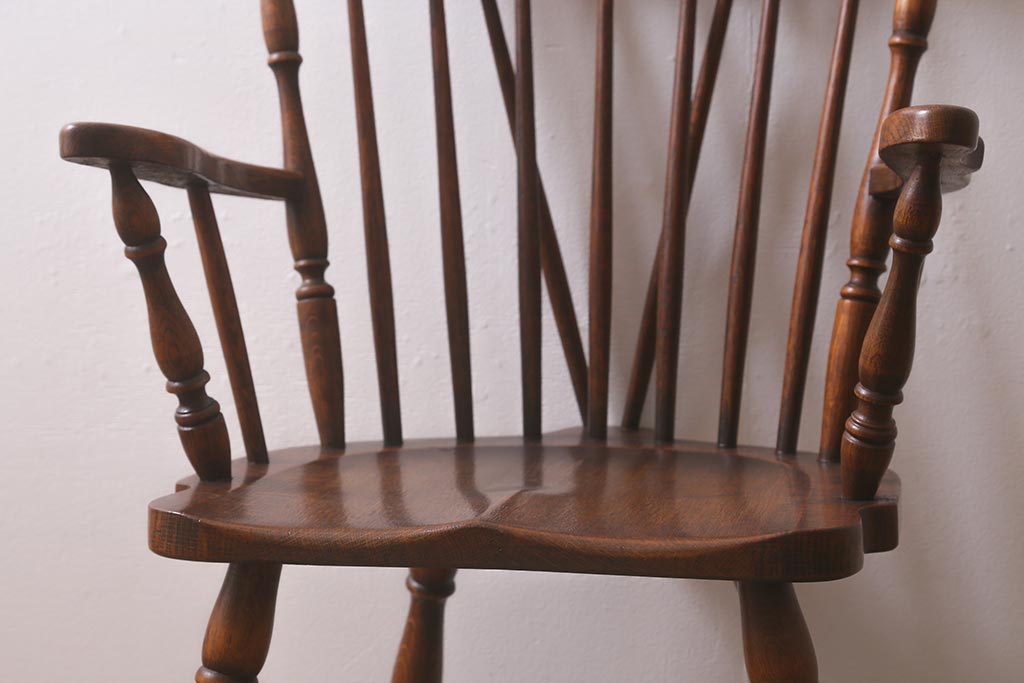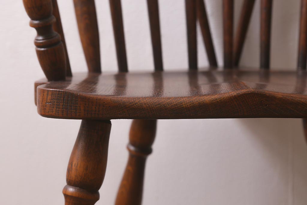 椅子・ベンチ> ウィンザーチェア > イギリスビンテージ オーク材 脚の挽き加工が上品なアームチェア(ダイニングチェア、板座チェア、ウィンザーチェア、ウインザーチェア)(R-043276)