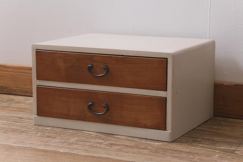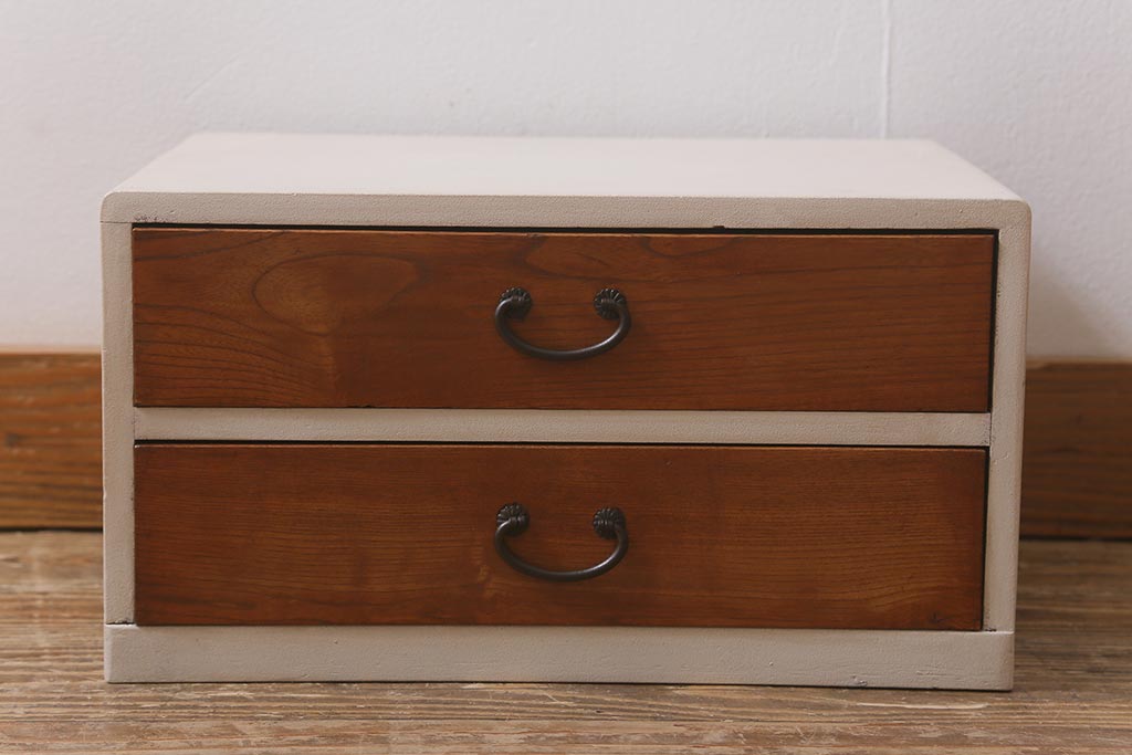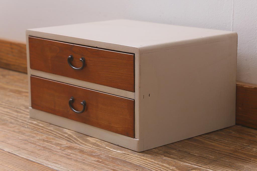 アンティーク家具 ペイント ツートンカラーがおしゃれな小引き出し(卓上収納、小物収納)(R-043062)
