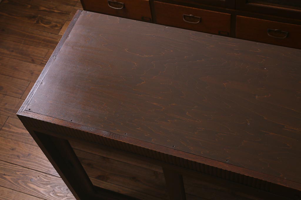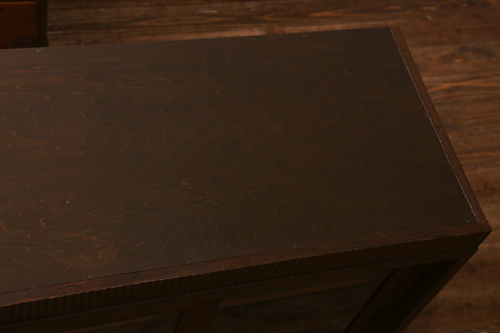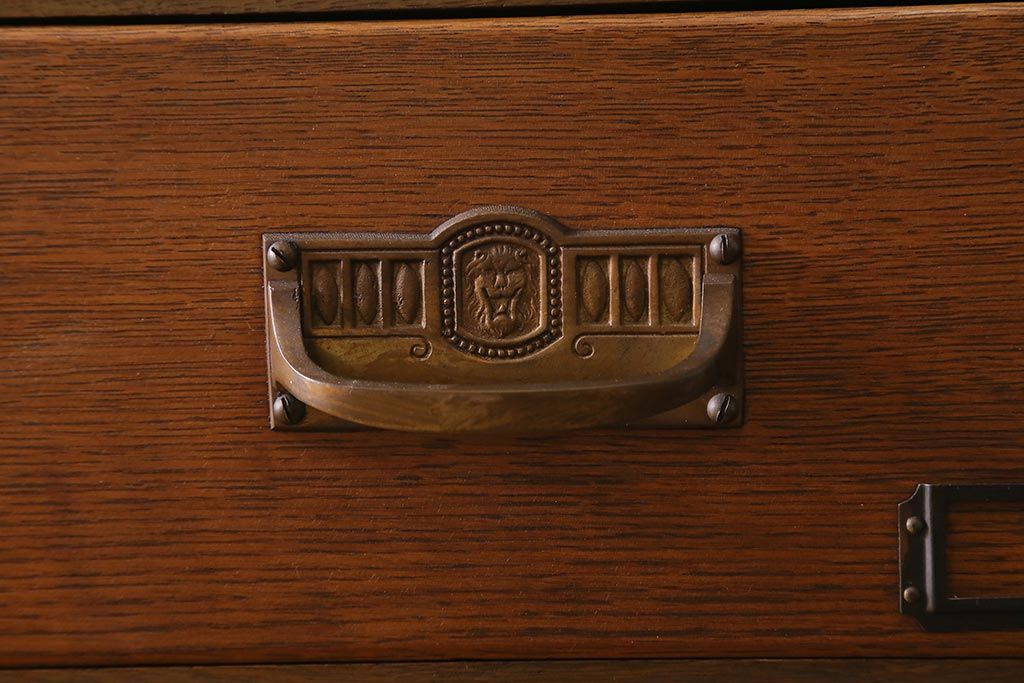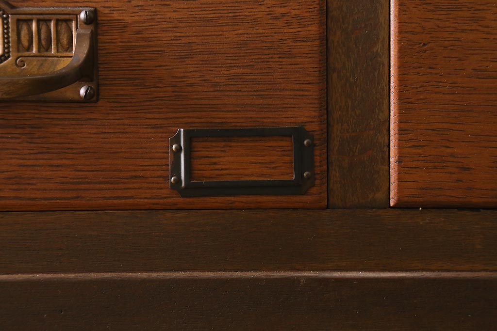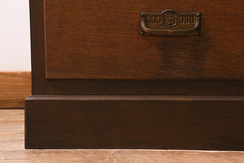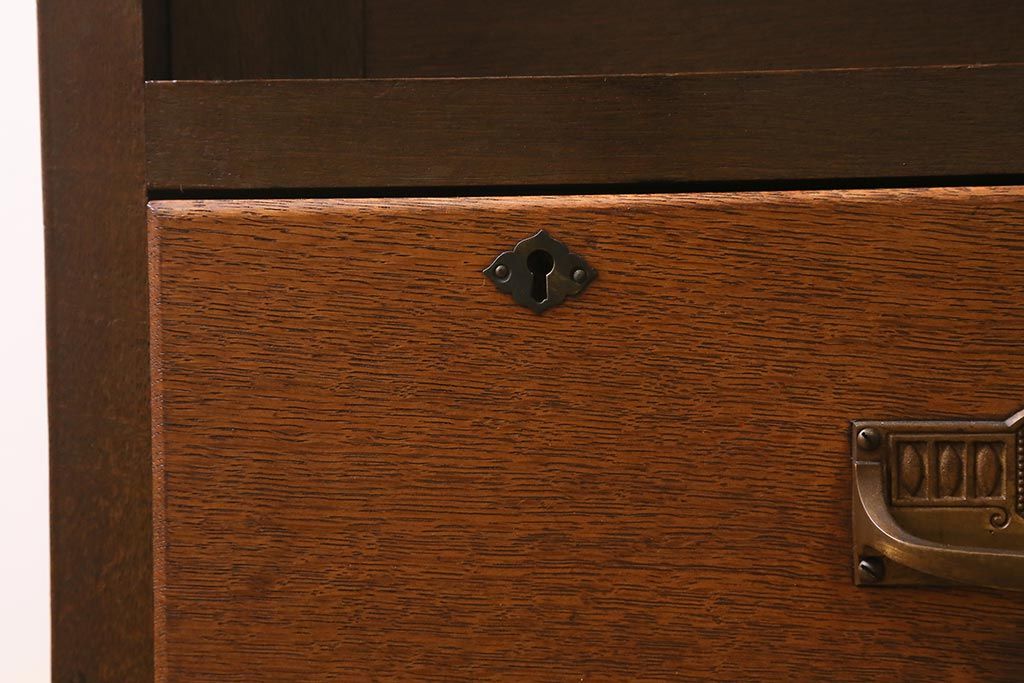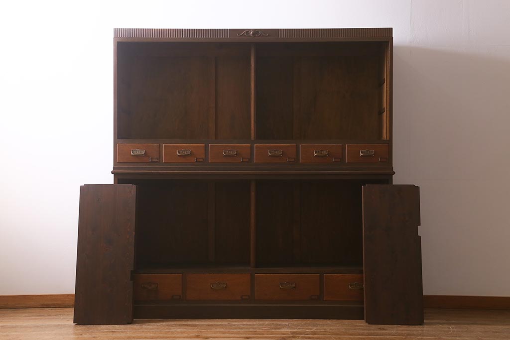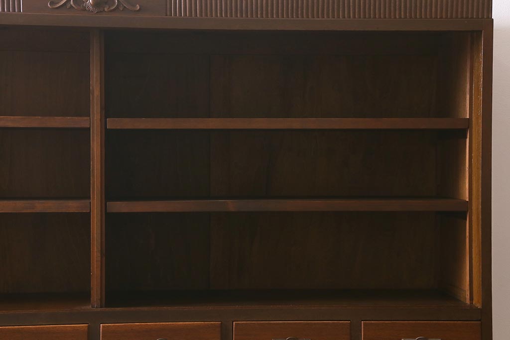 アンティーク家具 上手物! ナラ材 大正ロマン 四枚引き戸 おしゃれな意匠が目を引く重ねガラス戸棚(収納棚、飾り棚、キャビネット)(R-043056)です。