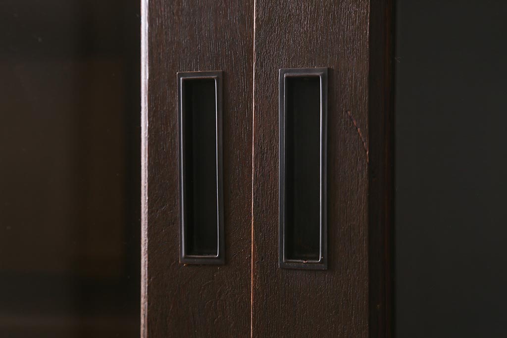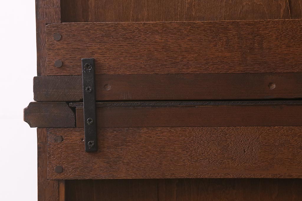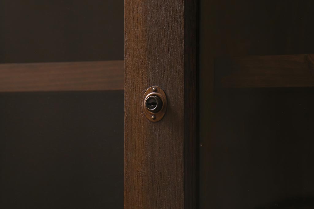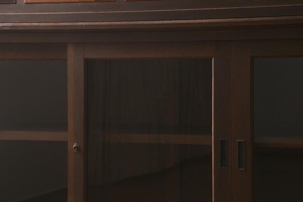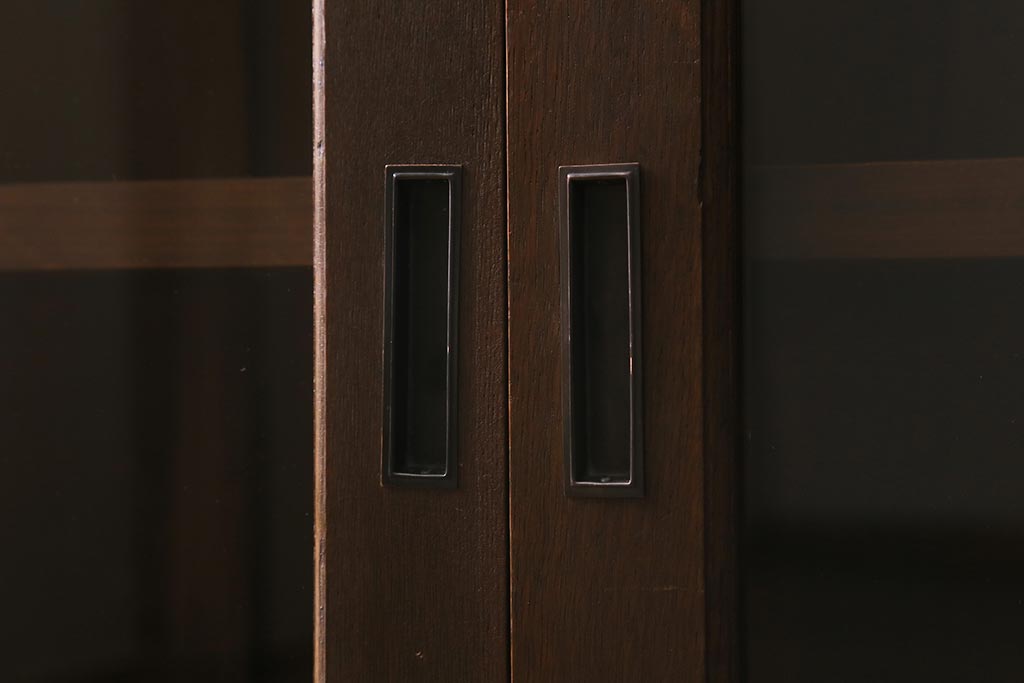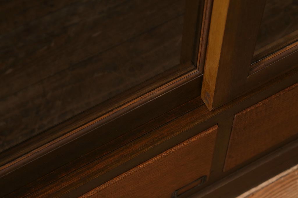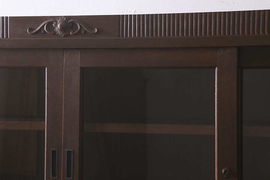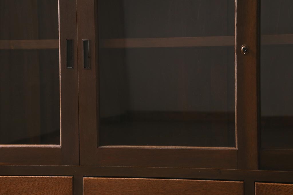 アンティーク家具 上手物! ナラ材 大正ロマン 四枚引き戸 おしゃれな意匠が目を引く重ねガラス戸棚(収納棚、飾り棚、キャビネット)(R-043056)