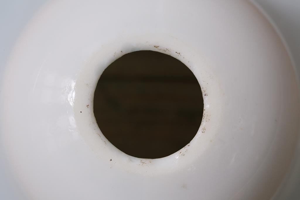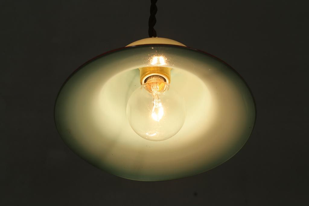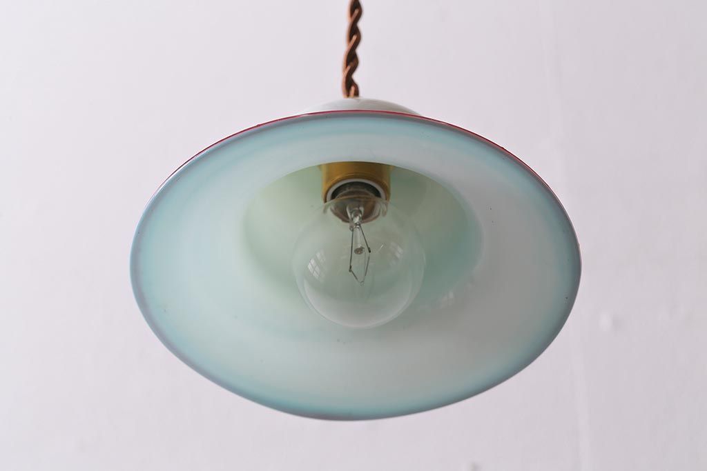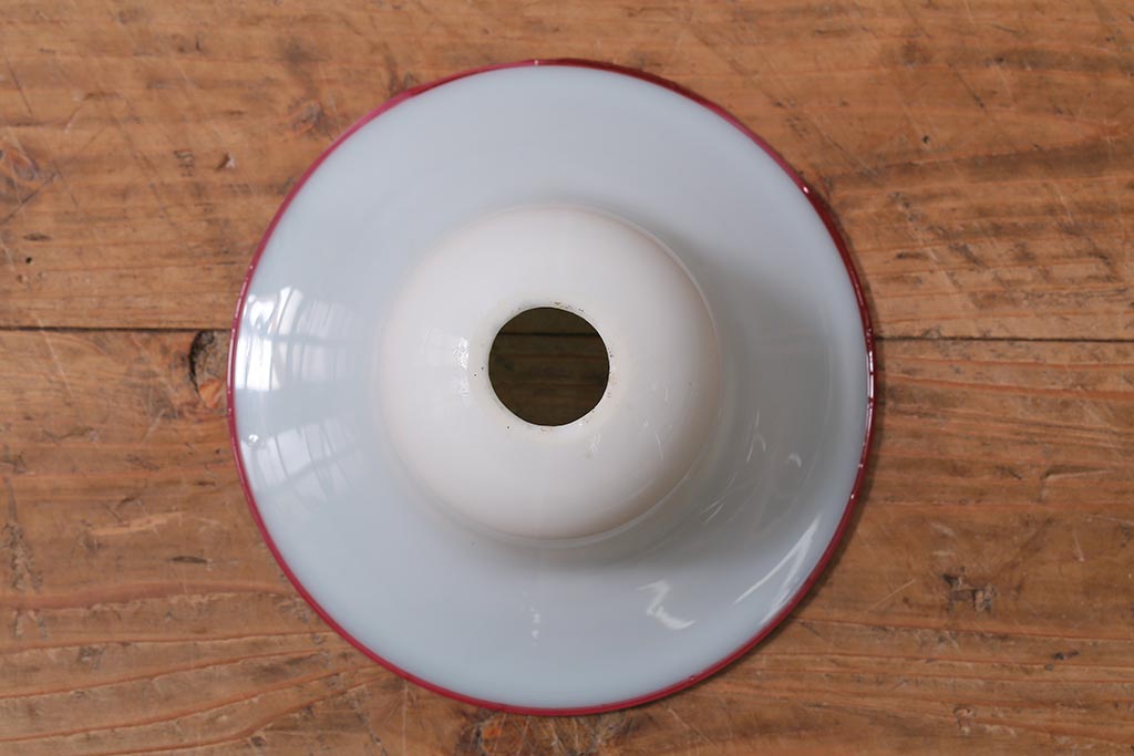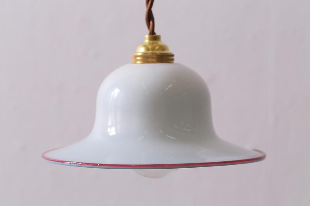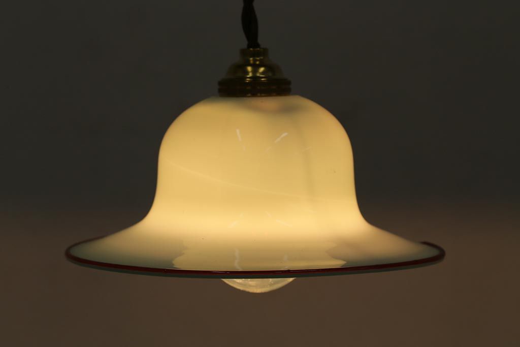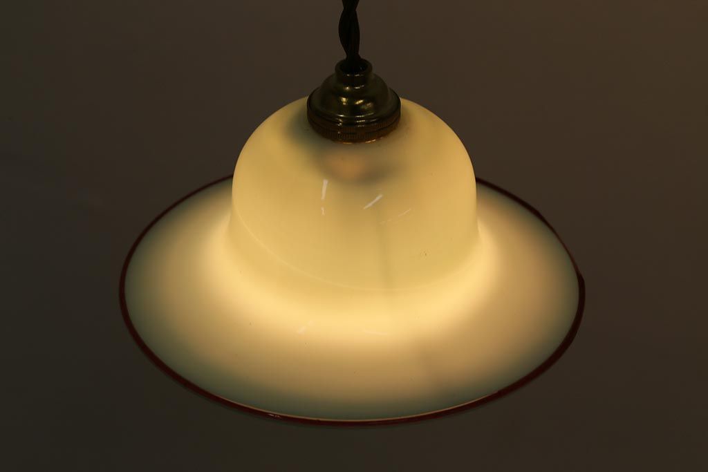 ヴィンテージ照明 イギリスビンテージ 赤縁 ミルクガラス 被せガラスがおしゃれなペンダントライト(ランプシェード、天井照明)(R-043115)です。