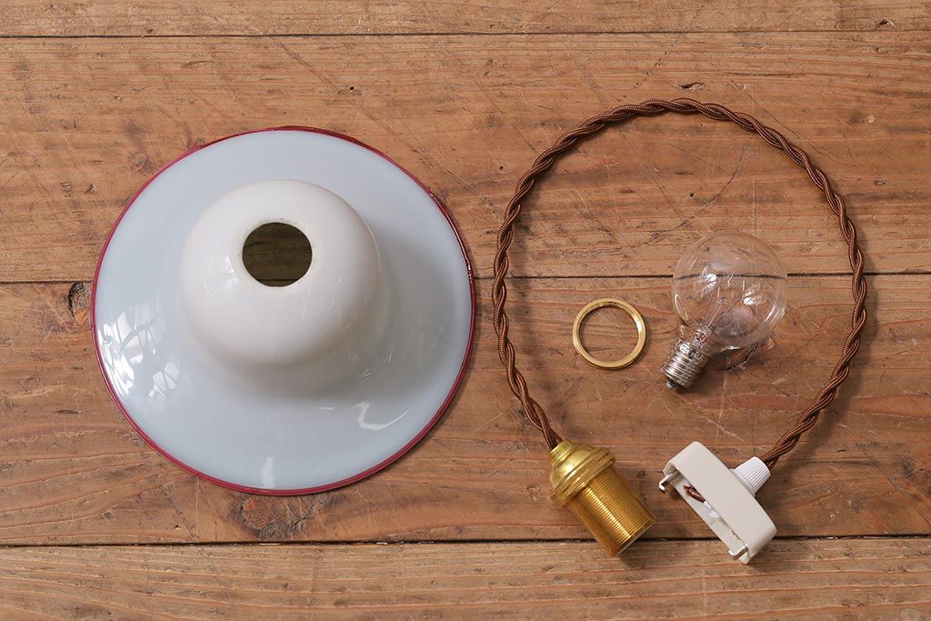 乳白色のシェードに赤縁がアクセントになった