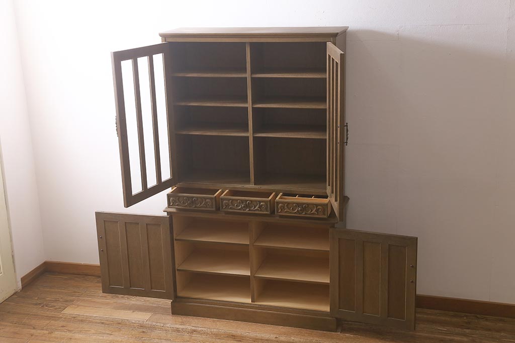 ヴィンテージ家具 神戸洋家具 クラシカルで上品な佇まいが素敵なカップボード(定価約80万円)(食器棚、収納棚、ビンテージ)(R-043060)