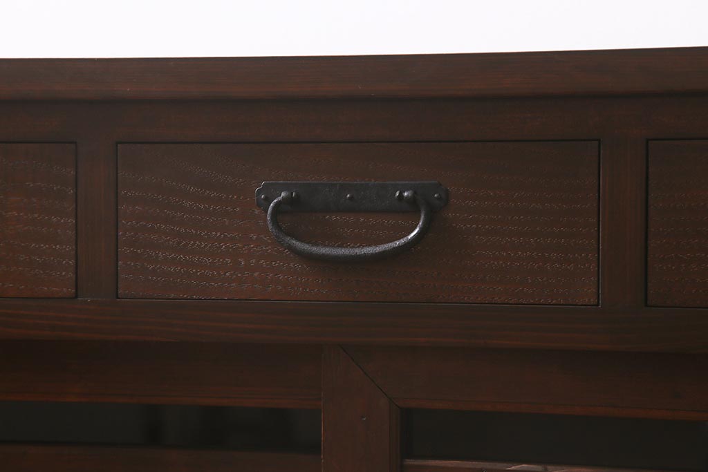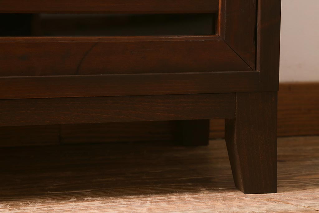 ラフジュ工房オリジナル 古建具リメイク 脚付き 上品な和の風情感じる引き出し付きローボード(戸棚、収納棚、テレビボード)(R-043220)