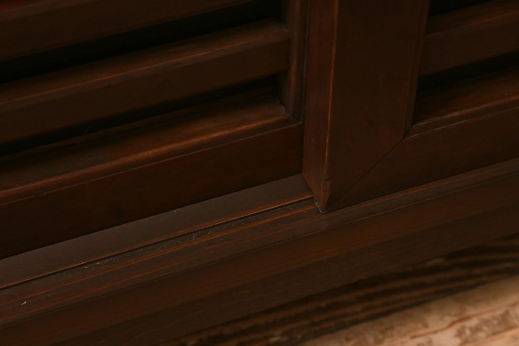 ラフジュ工房> キャビネット・戸棚> テレビ台・ローボード > ラフジュ工房オリジナル 古建具リメイク 脚付き 上品な和の風情感じる引き出し付きローボード(戸棚、収納棚、テレビボード)(R-043220)