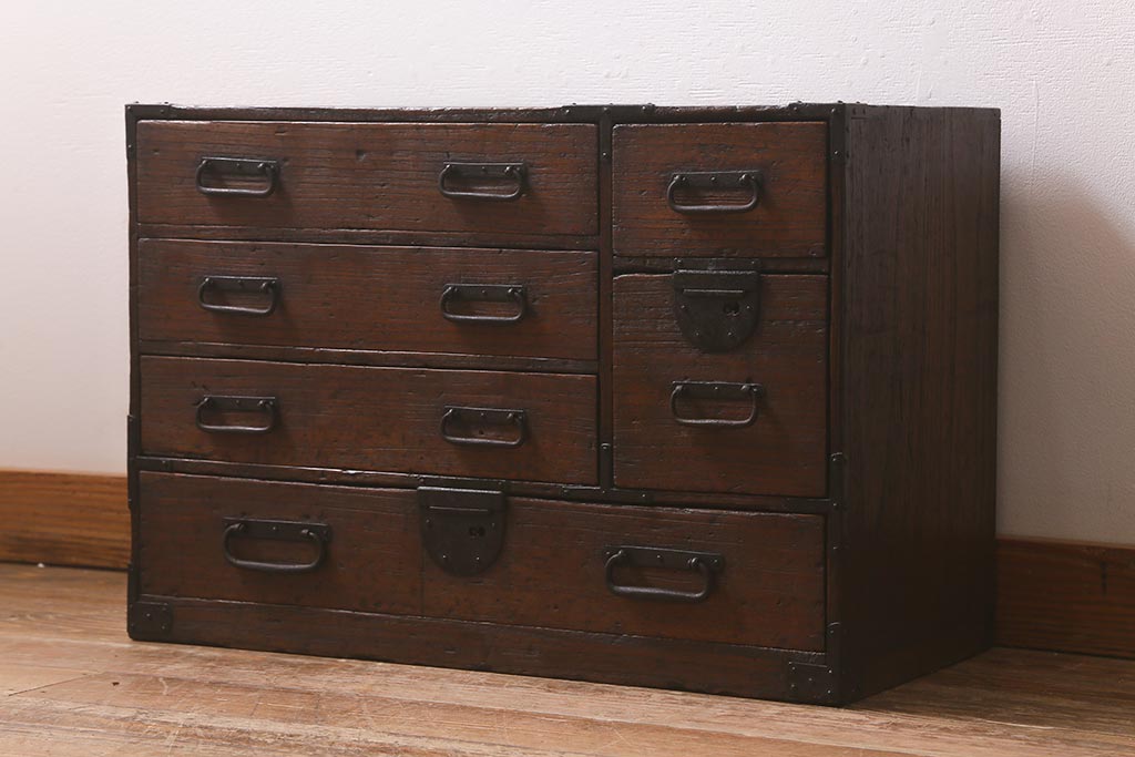 和箪笥 > アンティーク家具 和製アンティーク 総桐材 使い込まれた味わいが趣きあふれる明治大正期の小箪笥(時代箪笥、引き出し、桐箪笥、桐たんす)(R-043222)