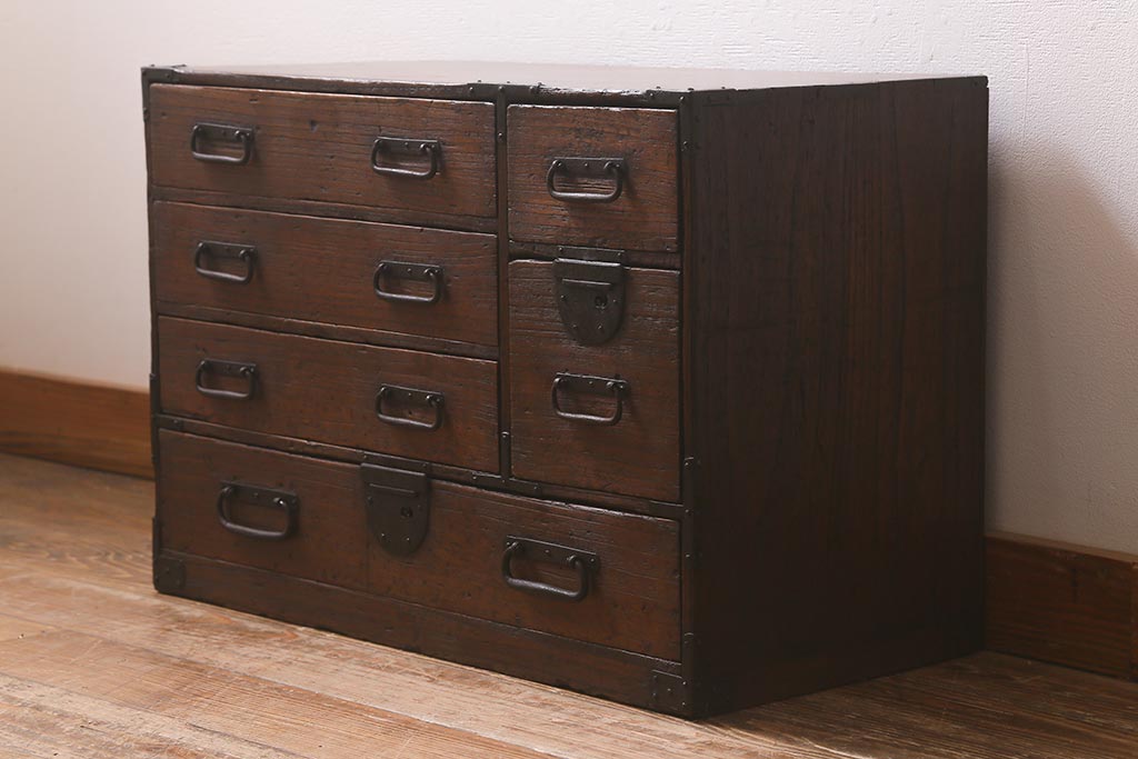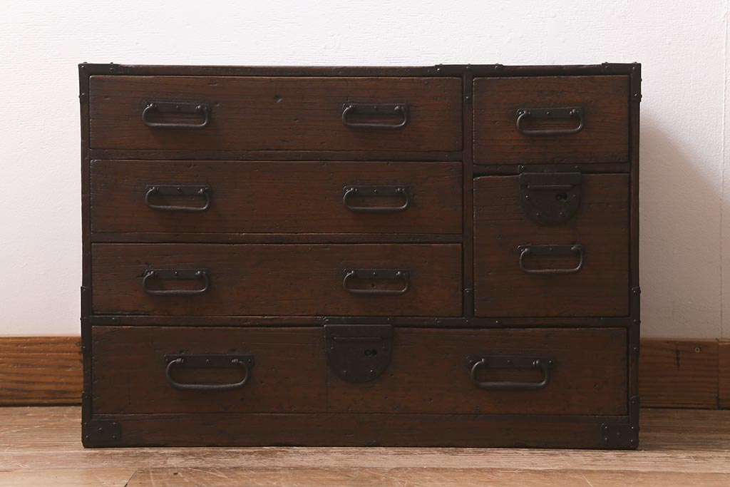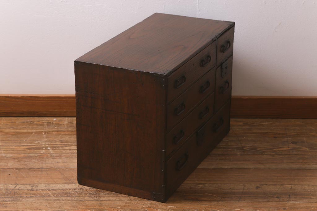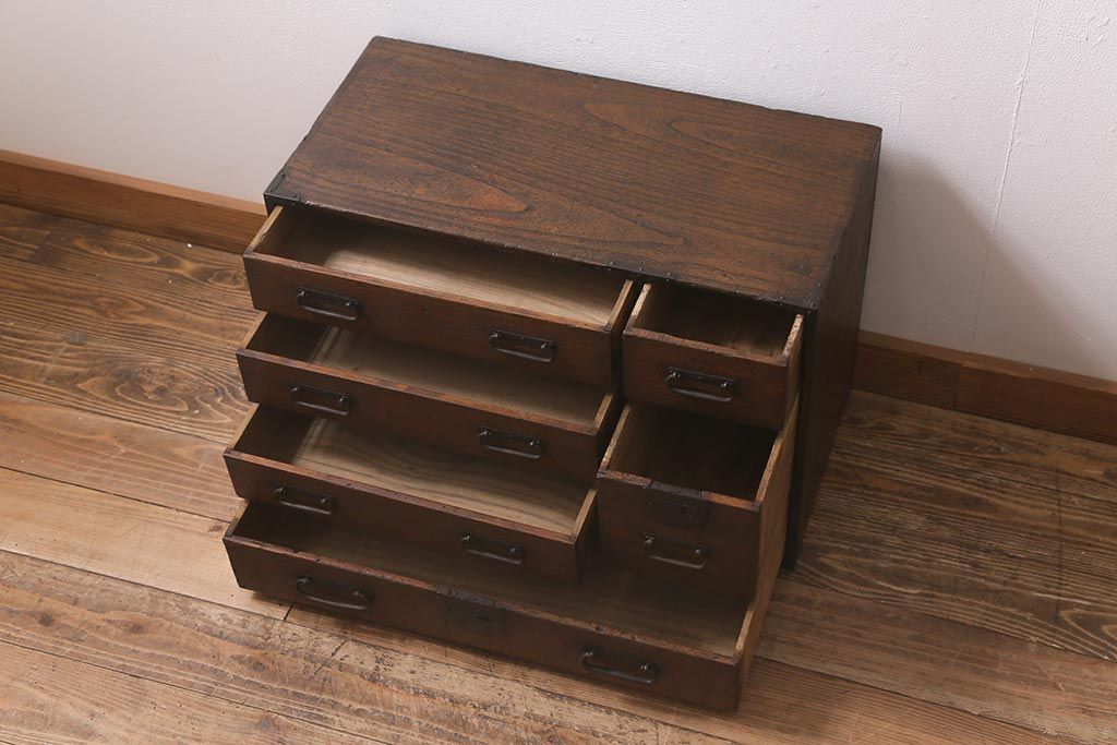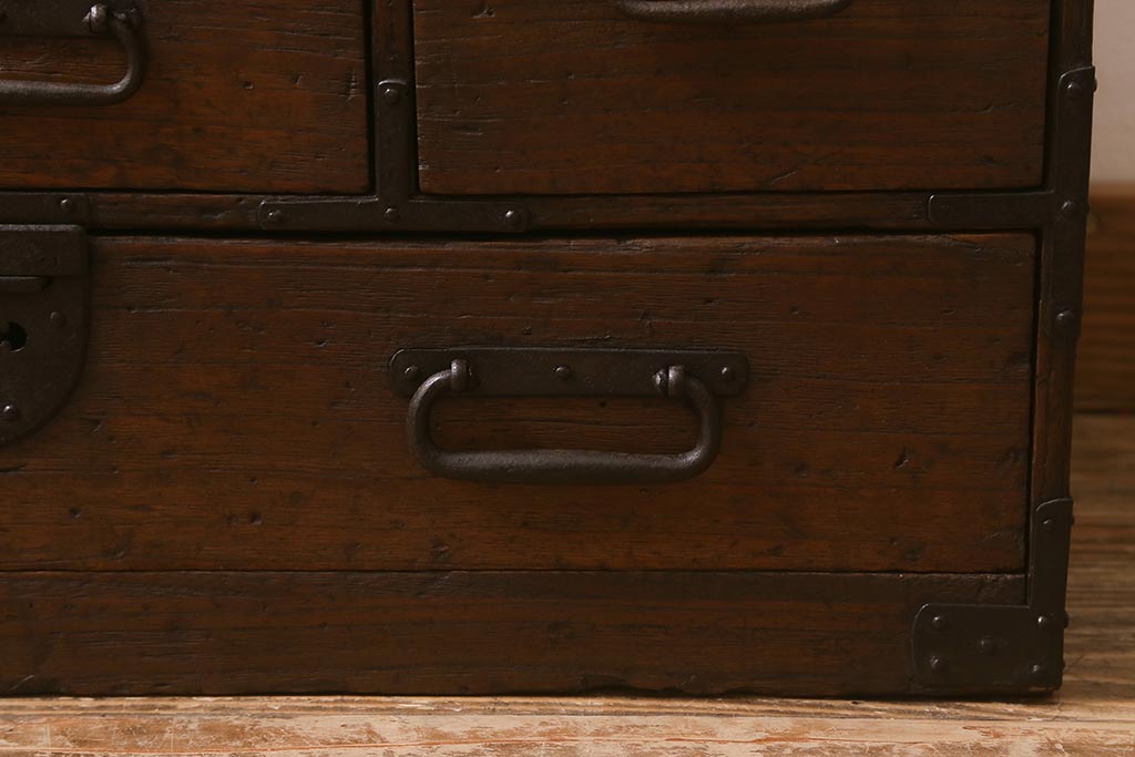 アンティーク家具 和製アンティーク 総桐材 使い込まれた味わいが趣きあふれる明治大正期の小箪笥(時代箪笥、引き出し、桐箪笥、桐たんす)(R-043222)