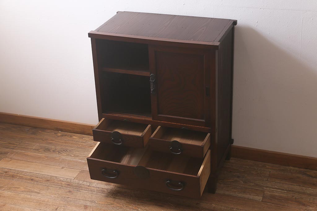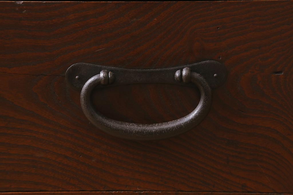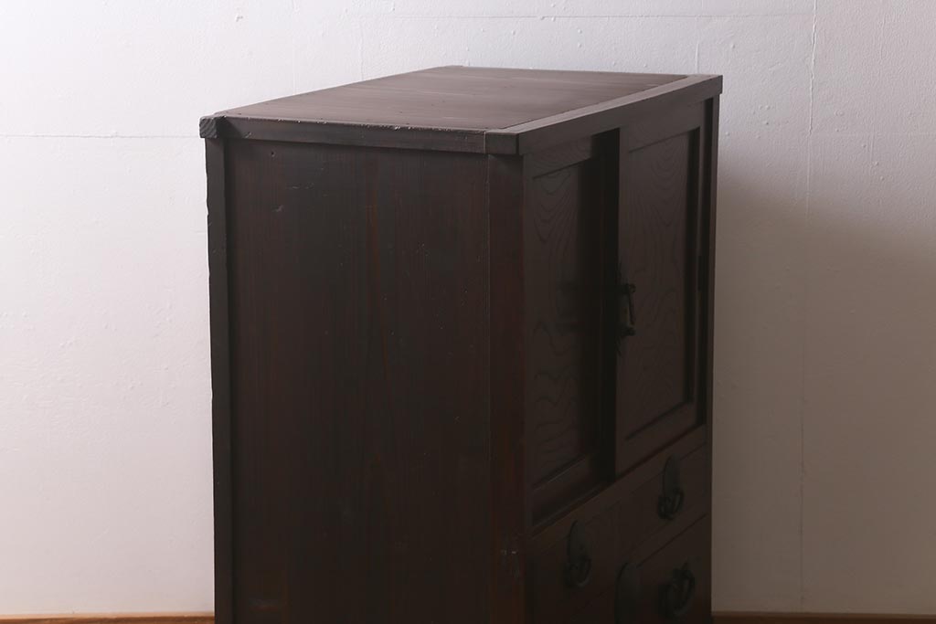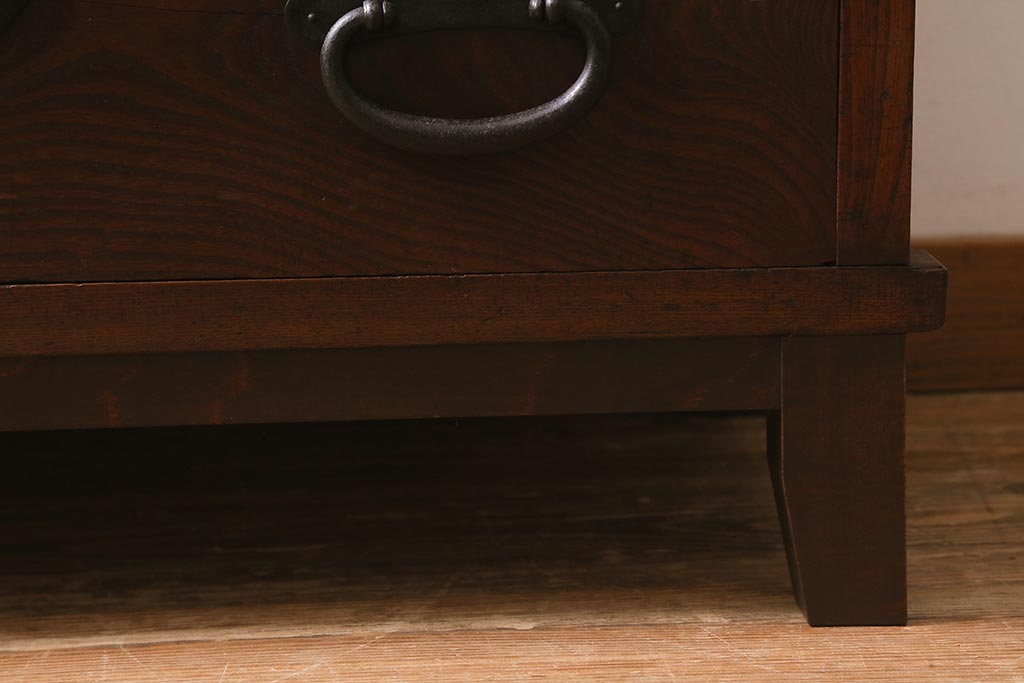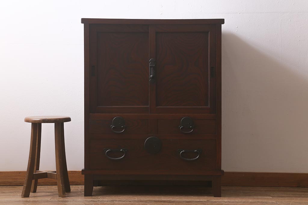 和箪笥> 船箪笥 > アンティーク家具 和製アンティーク 脚付きリメイク ケヤキの杢目が美しいシンプルな帳場箪笥(収納棚、時代箪笥、戸棚)(R-043254)